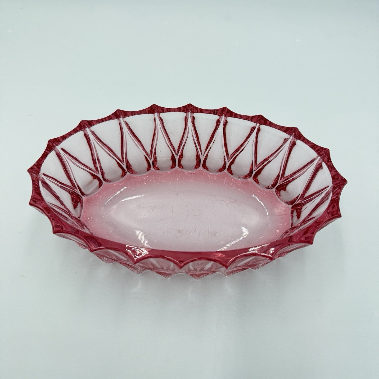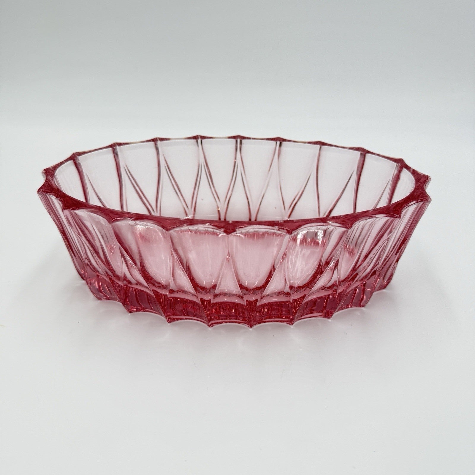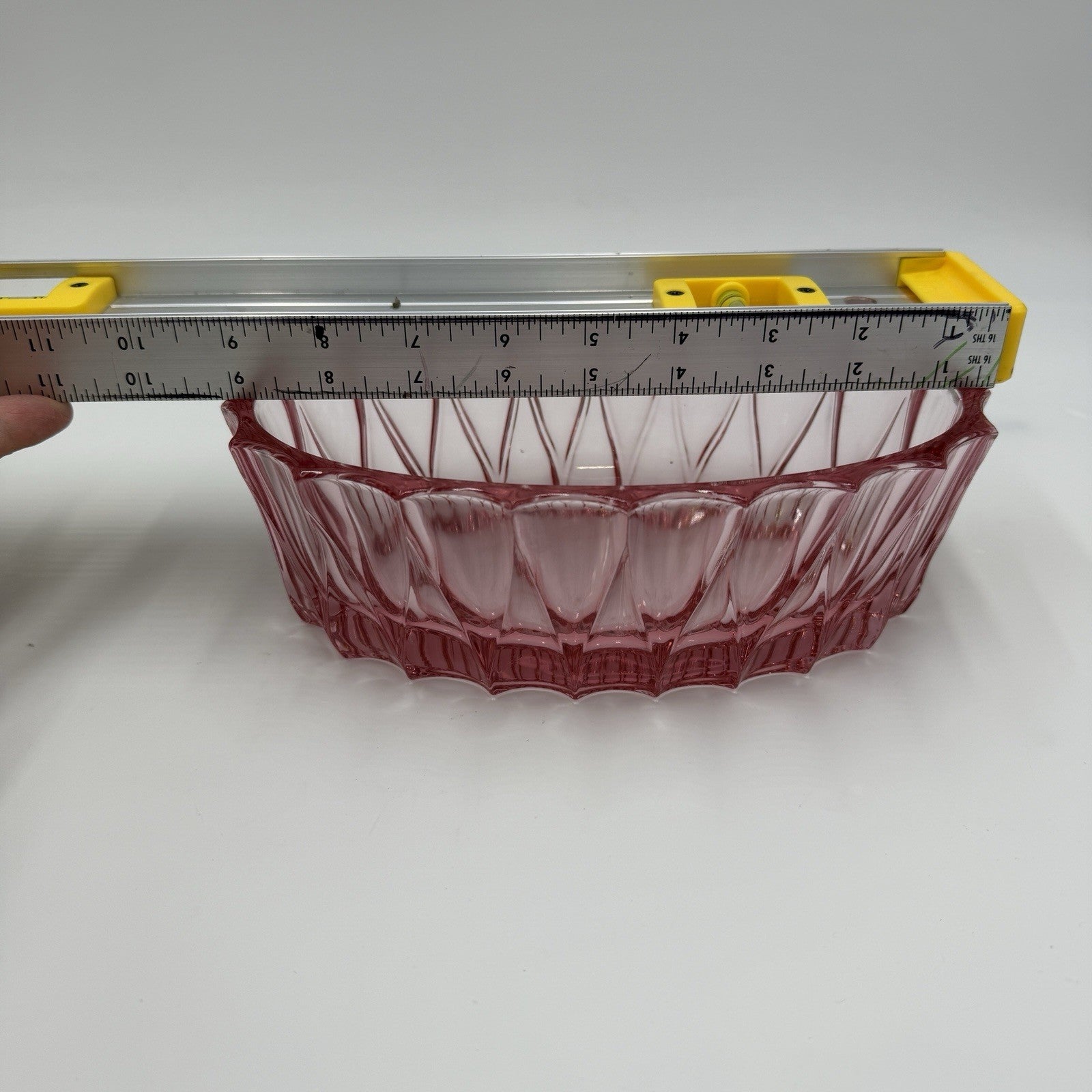 Vintage Fostoria Art Glass Pink Faceted Oval Bowl # 189 MCM 1960 Measure 9”x3”