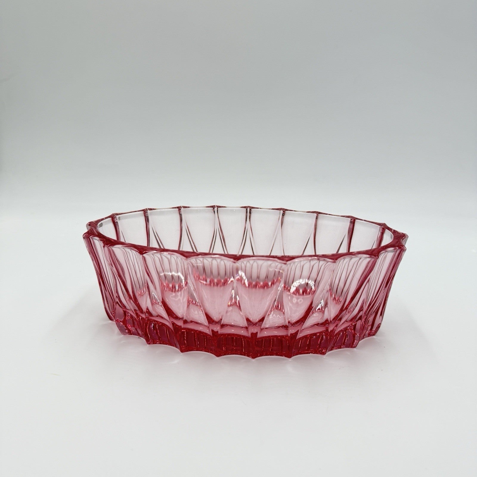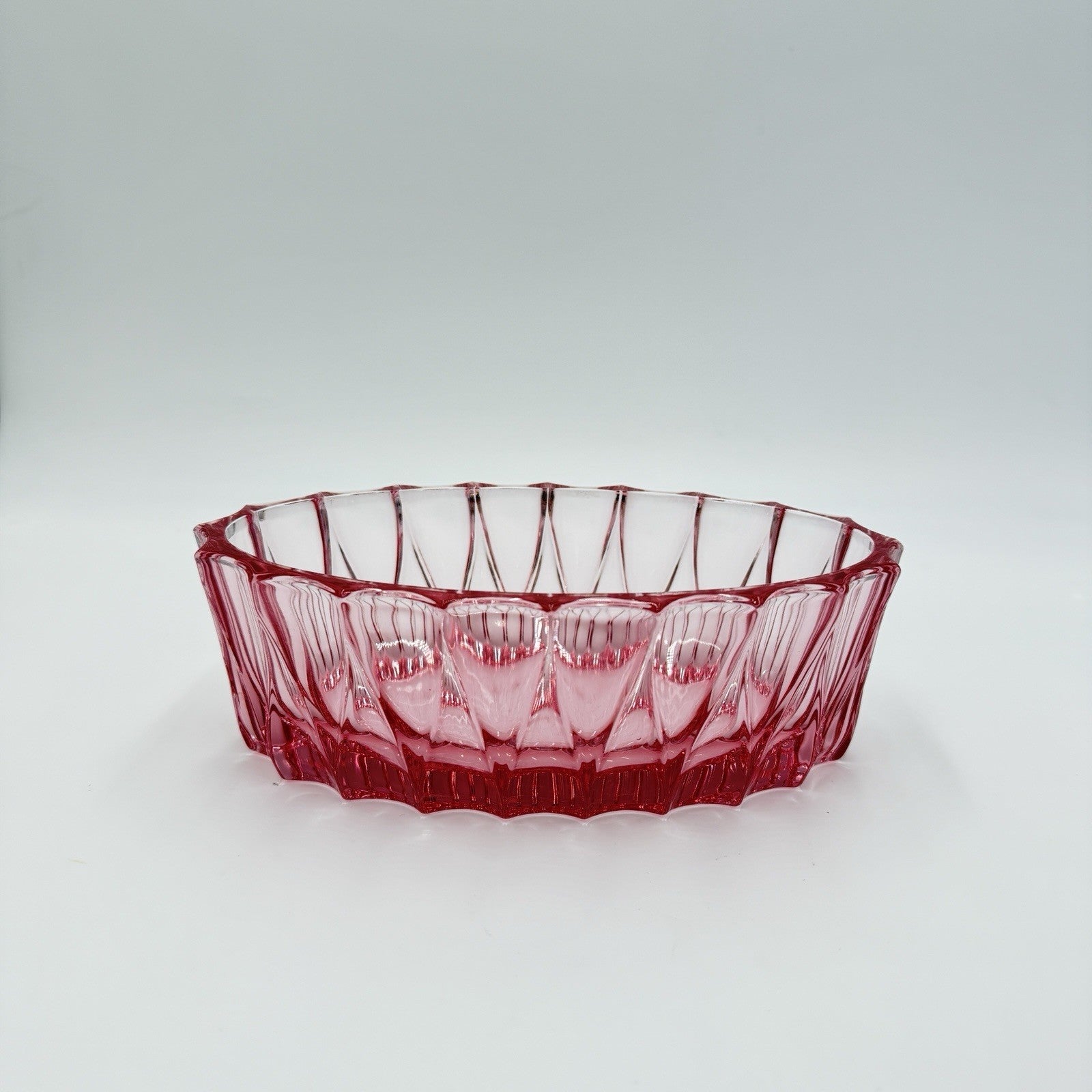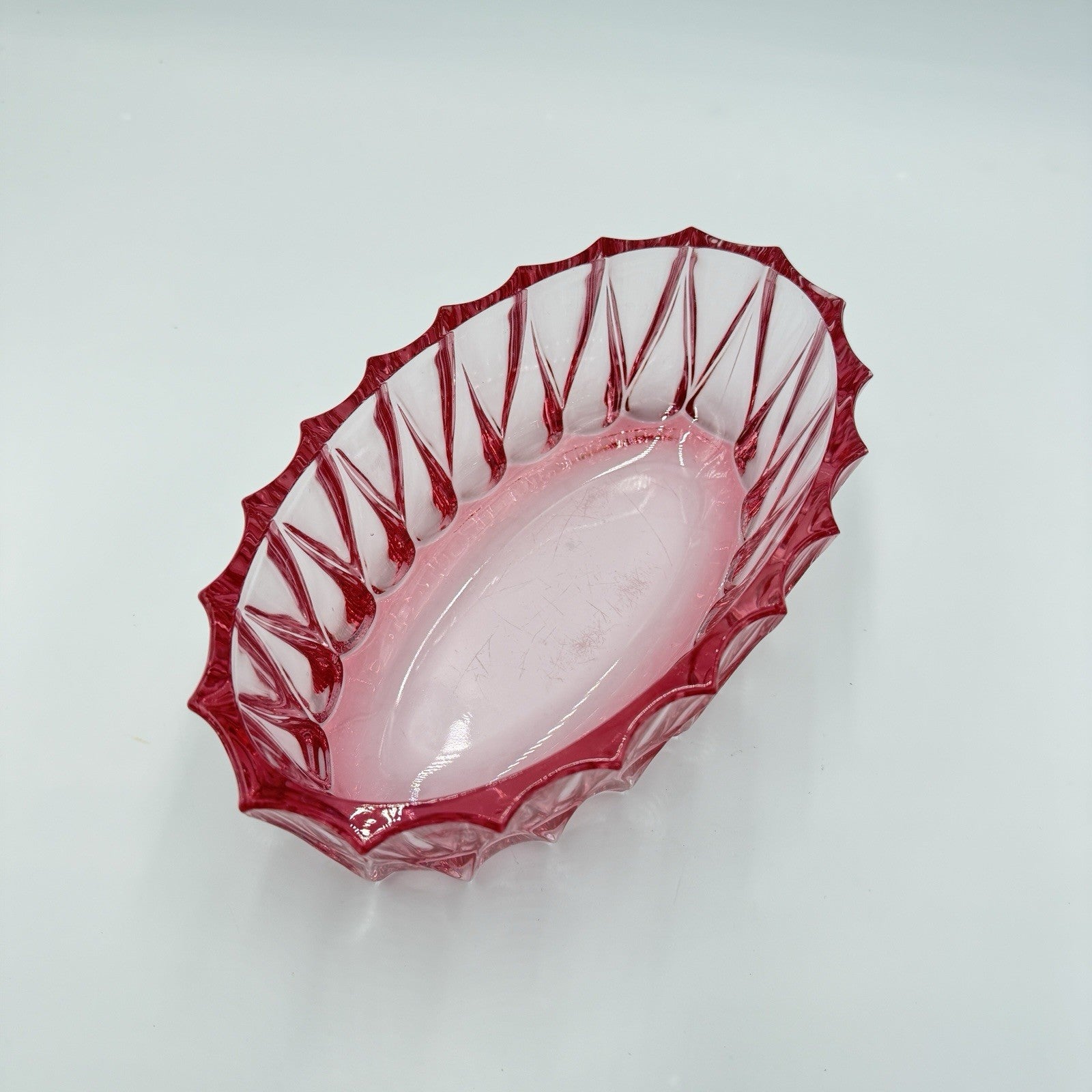 Vintage Fostoria Art Glass Pink Faceted Oval Bowl # 189 MCM 1960 Measure 9”x3”