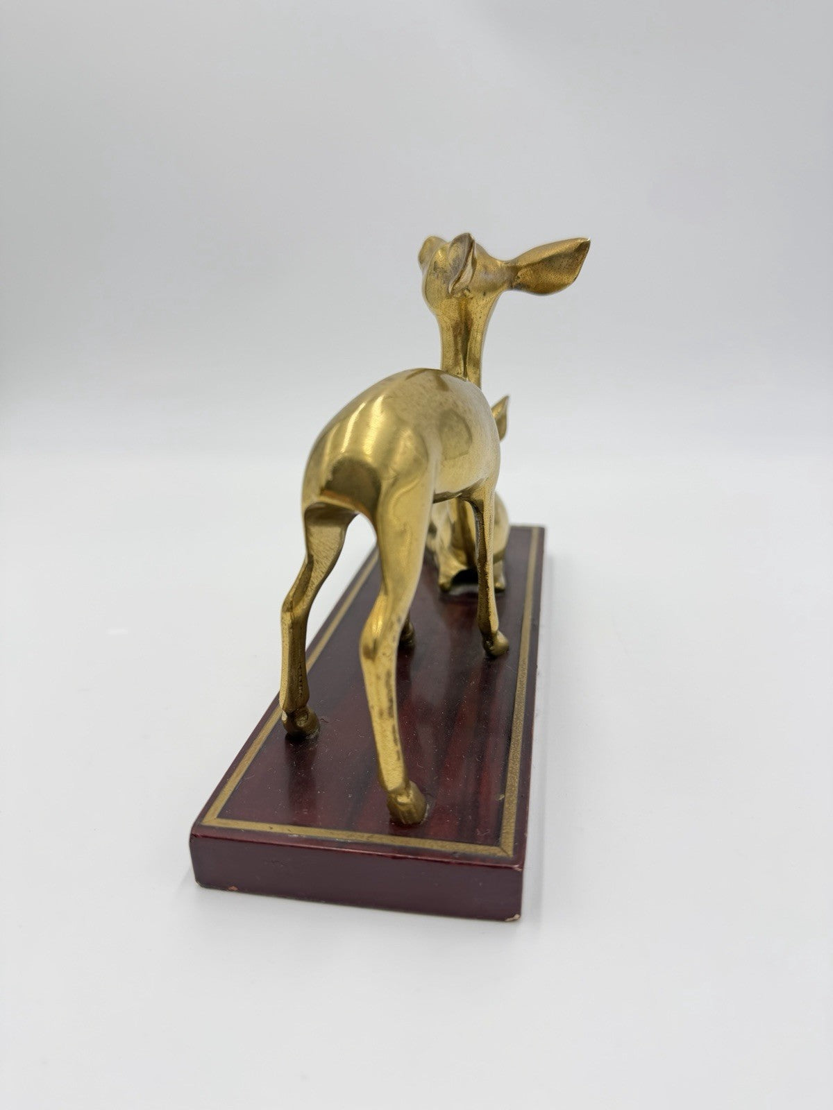 Vintage Gatco Solid Brass Deer Set on Wood Stand Woodland Figurines 6”x9”