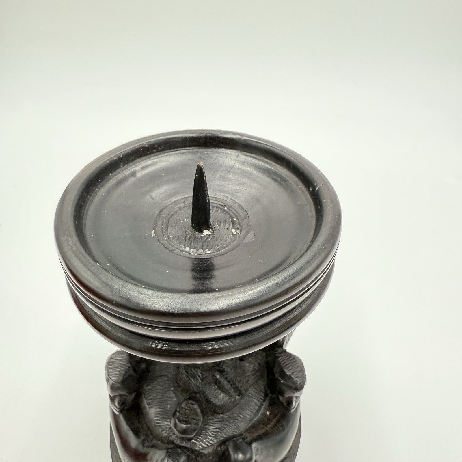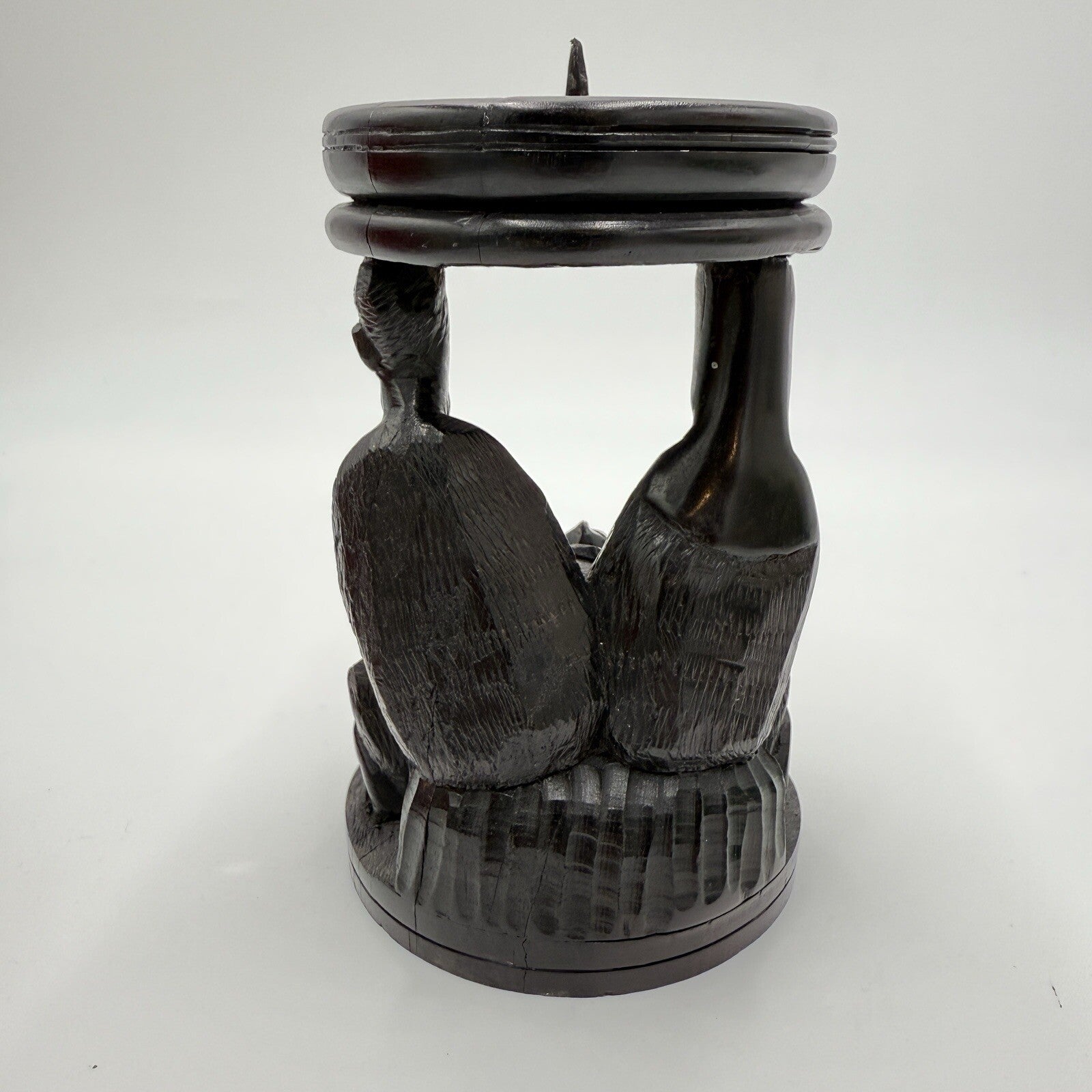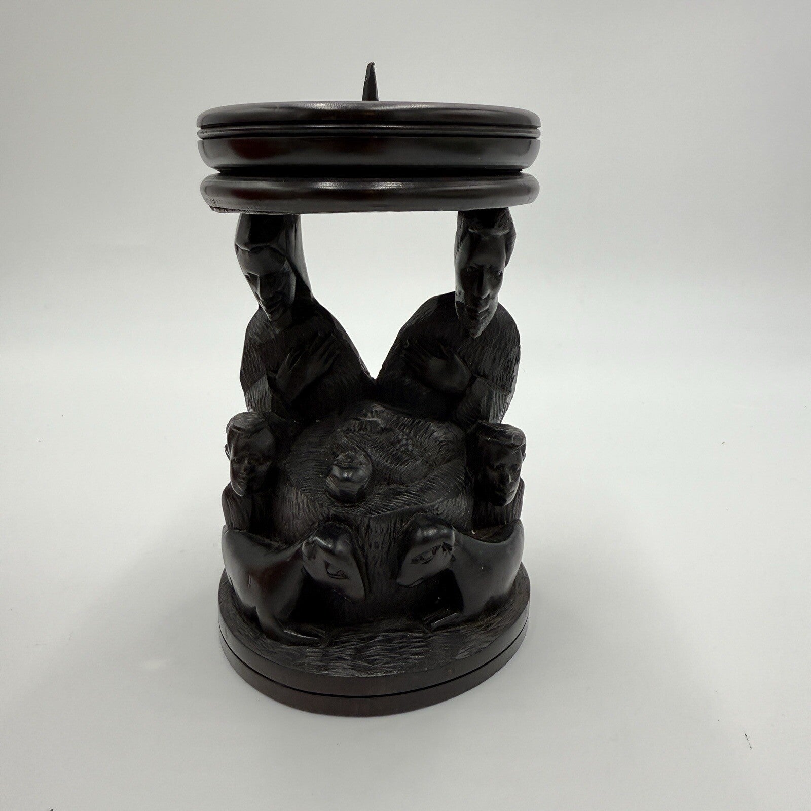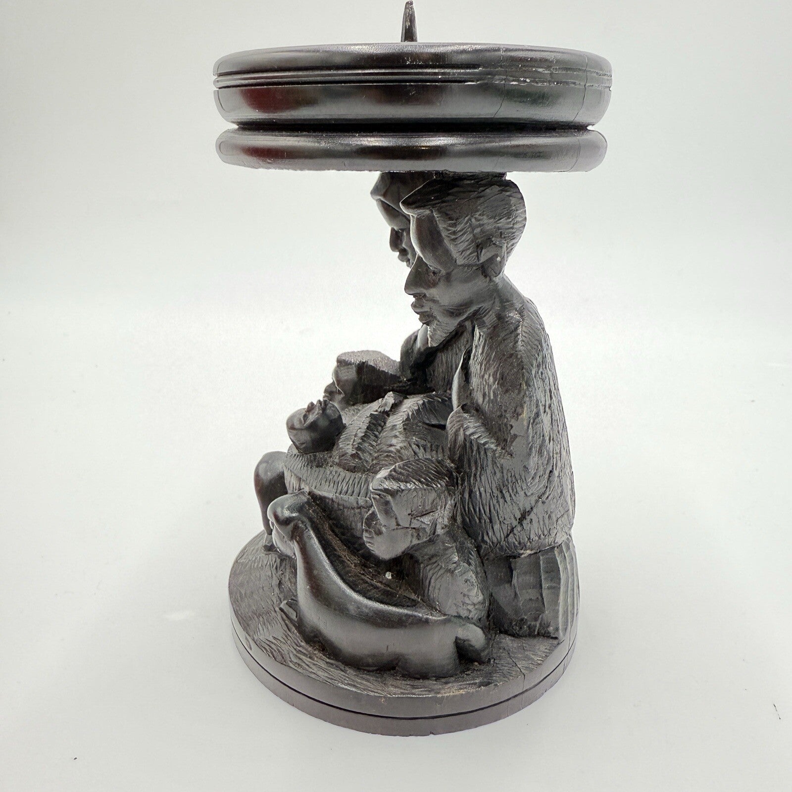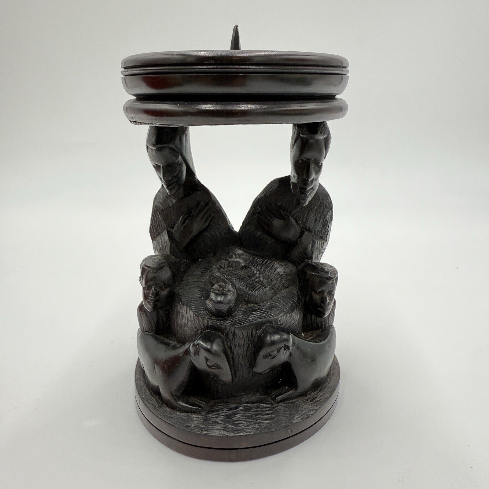 Vintage hand Carved Ebony Wood Nativity Candle Holder Solid Folk Art 6.5in