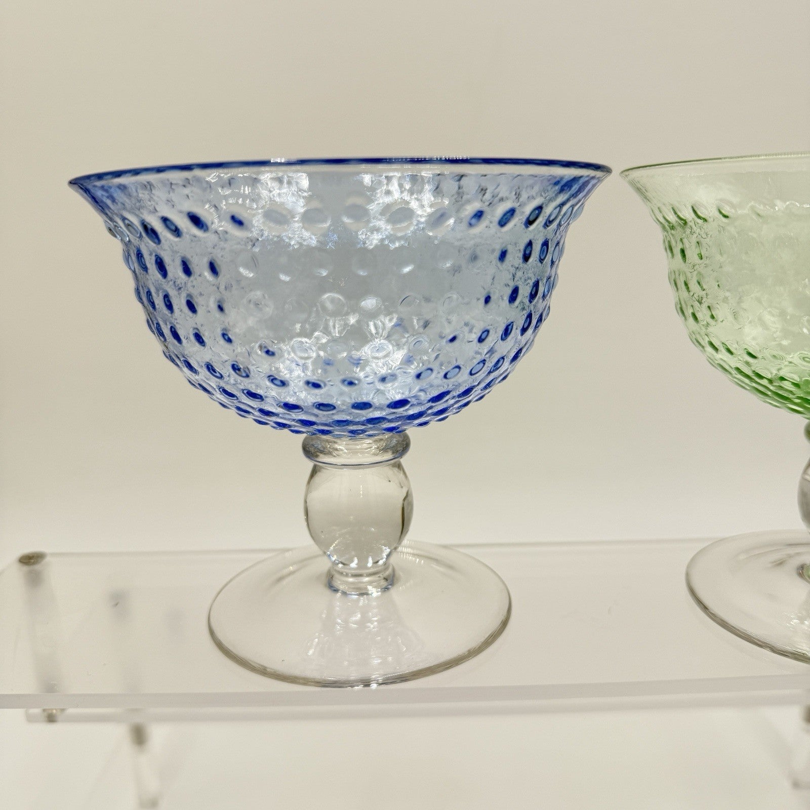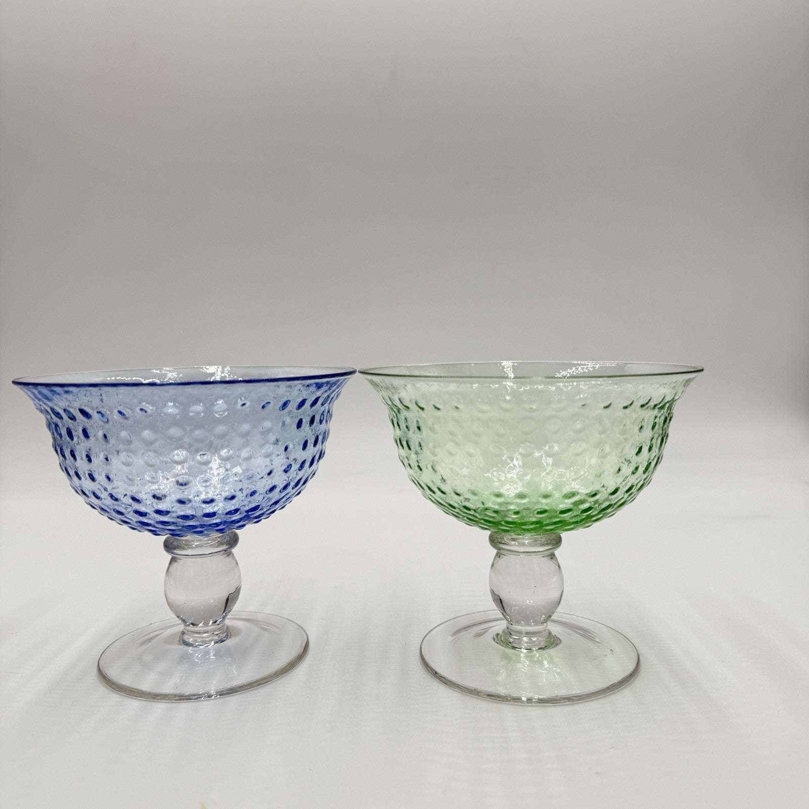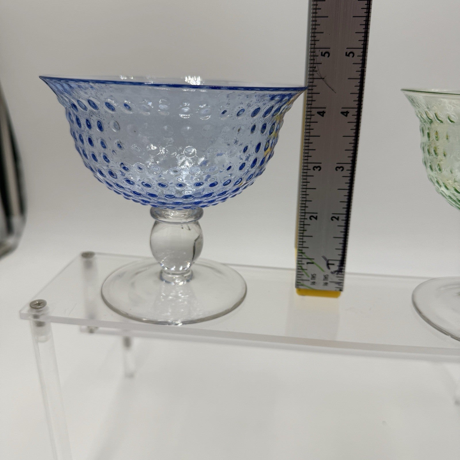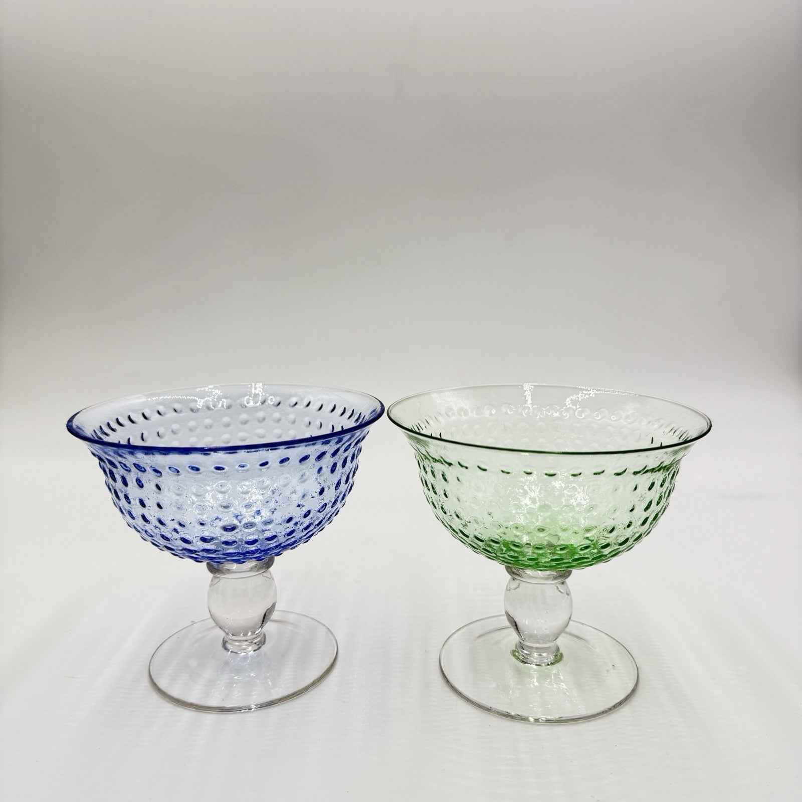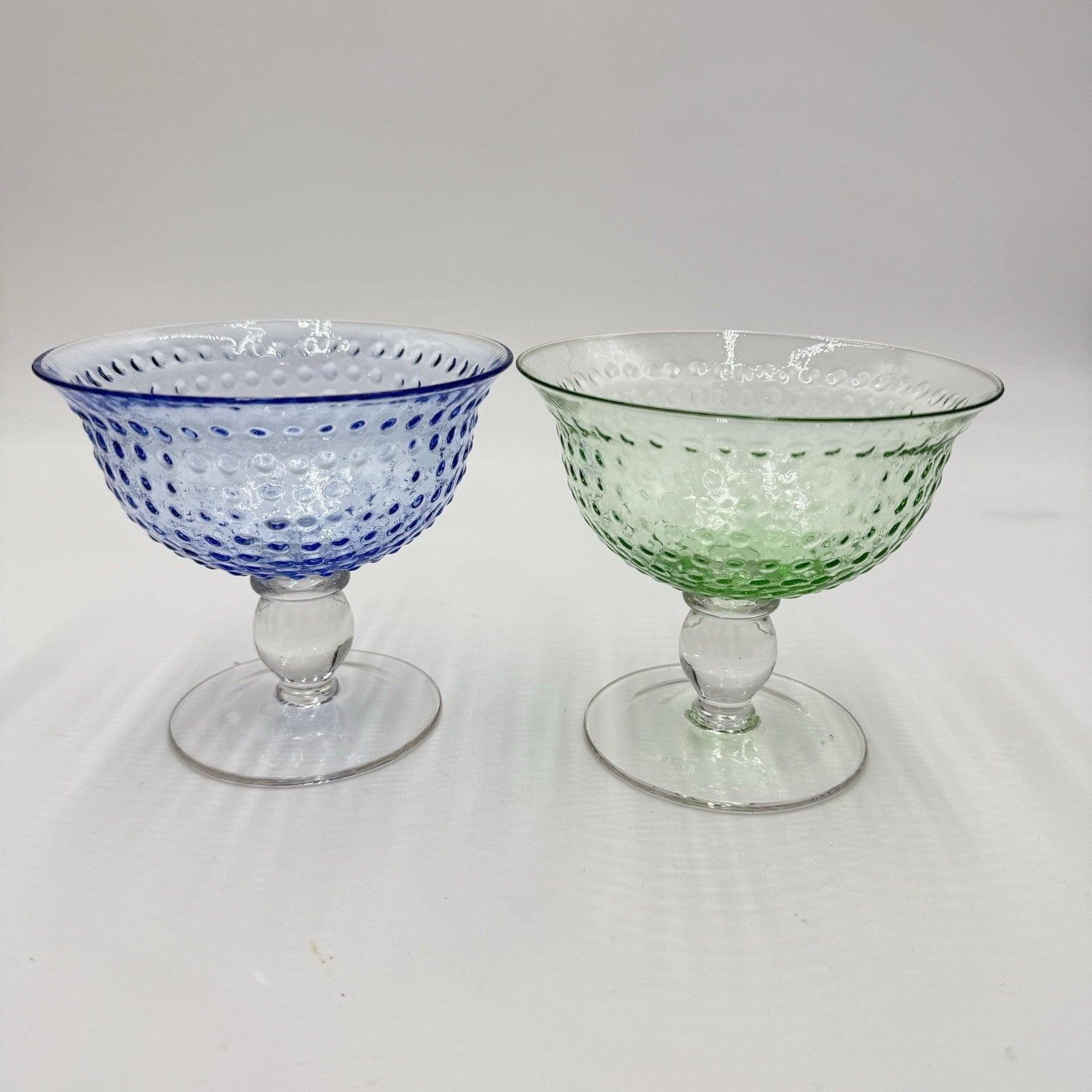Vintage Hobnail Art Glass Blue Green Dessert Sherbet/Glasses Pair