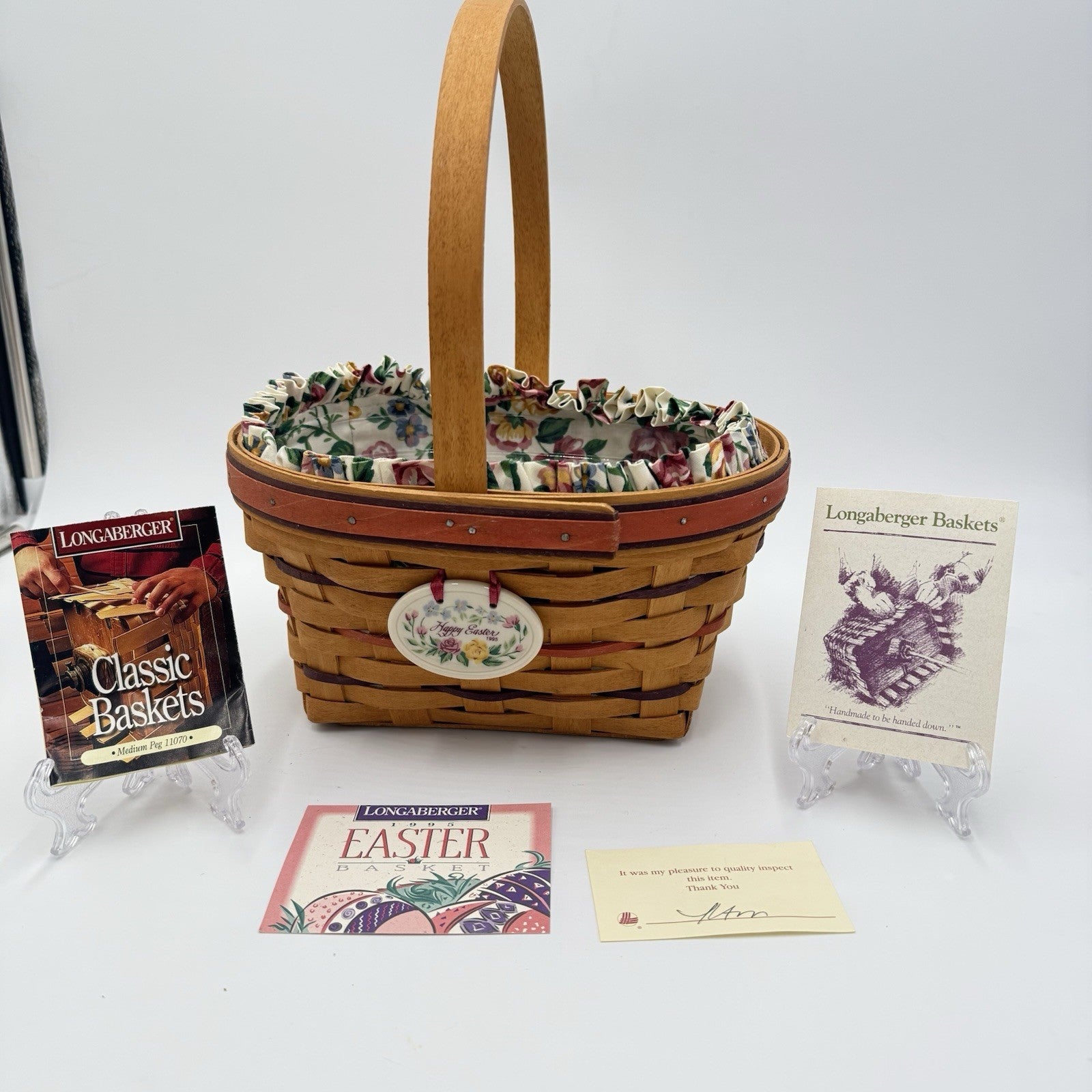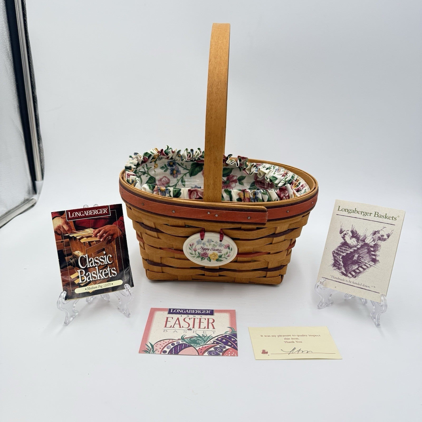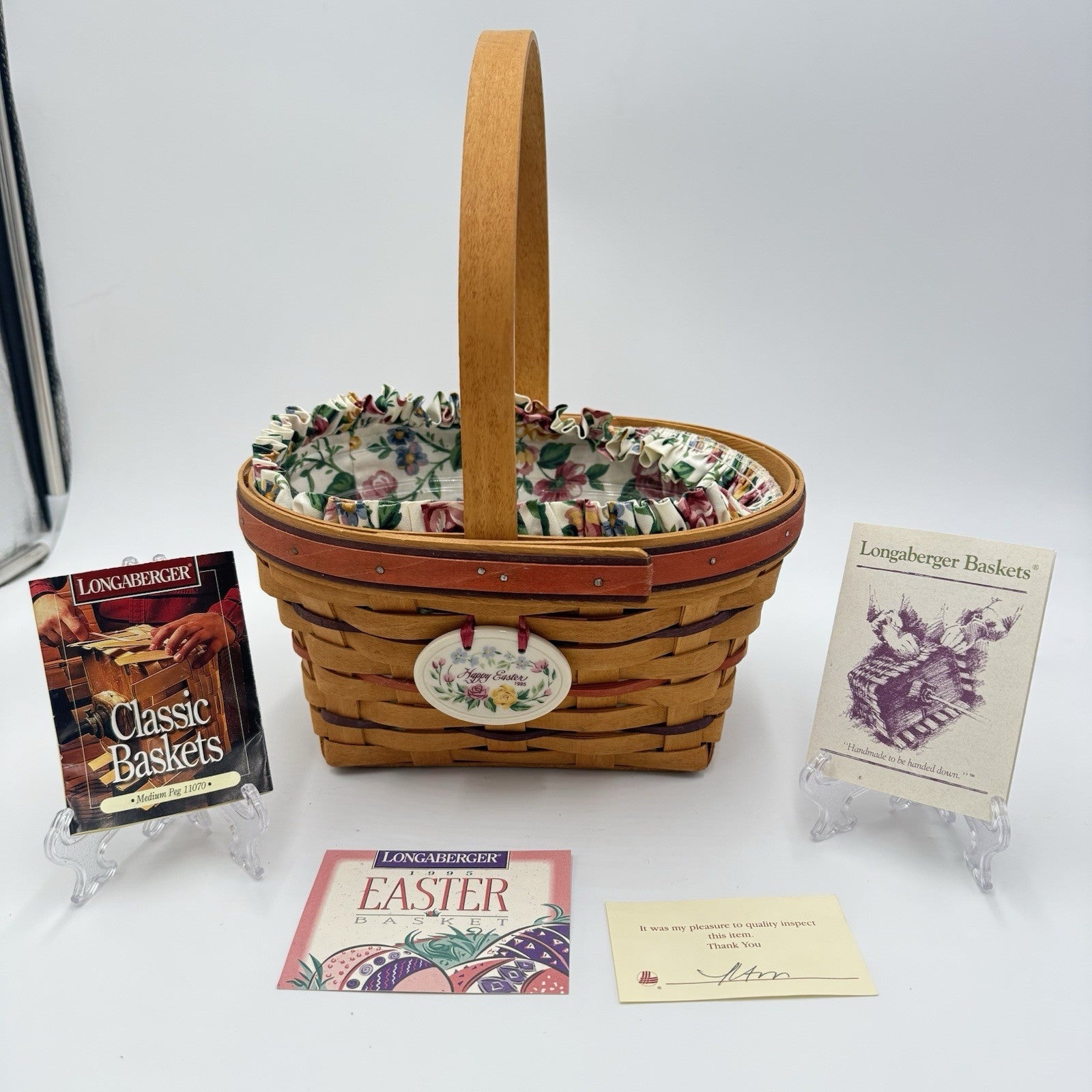 Vintage Longaberger 1995 Easter Basket w/Liner Protector 10”x 9"x6" Woven COA