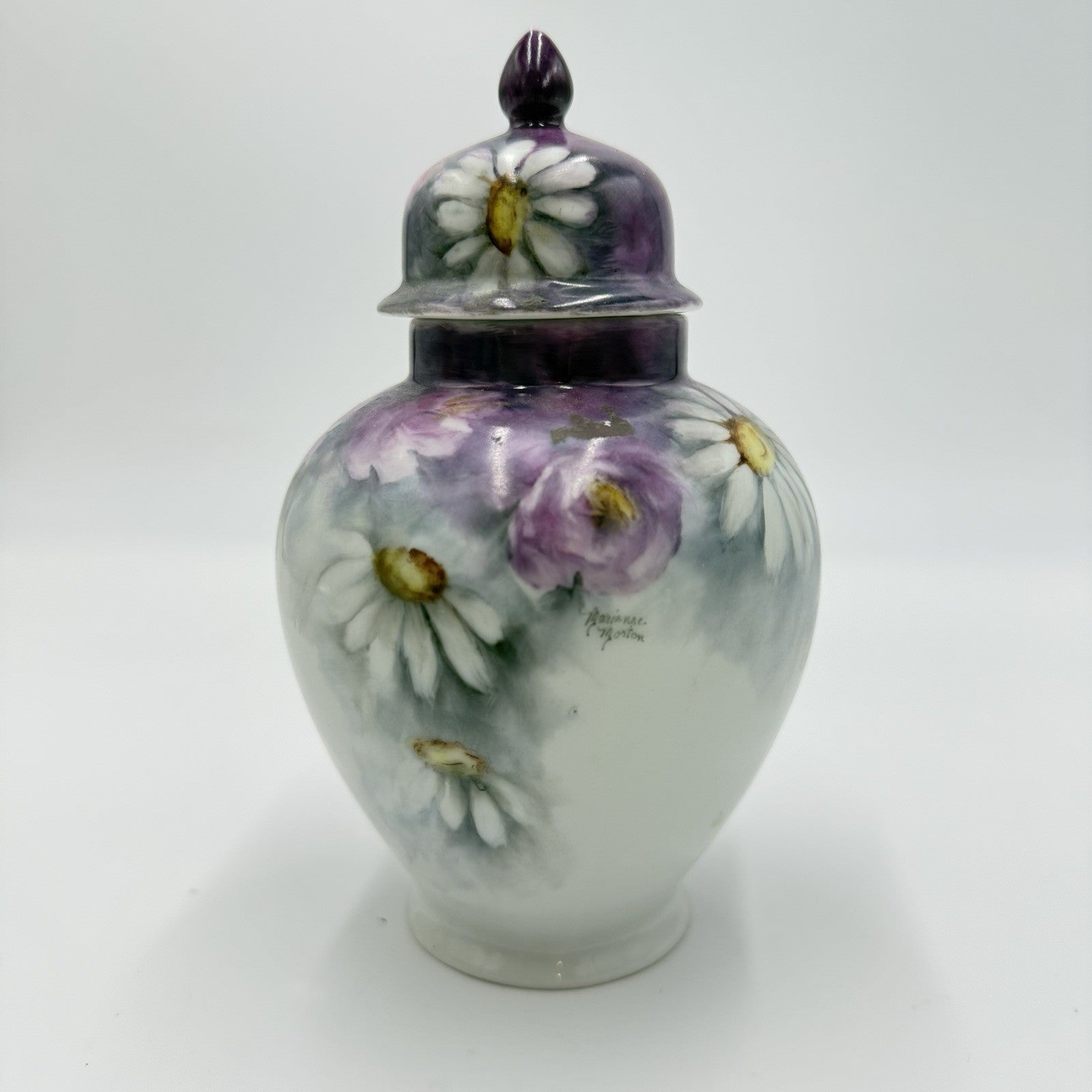 Vintage Porcelain Ginger Jar Hand Painted Signed Daisies By Marianne Morton 1983