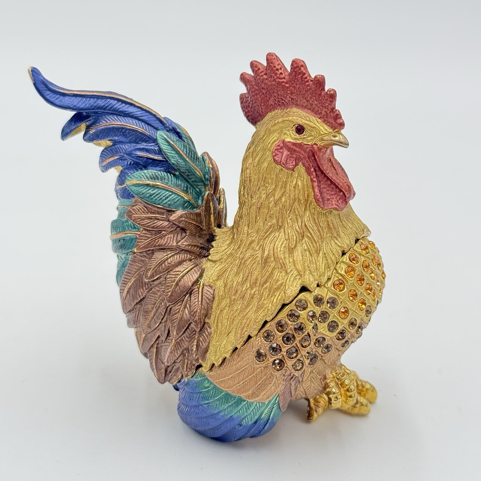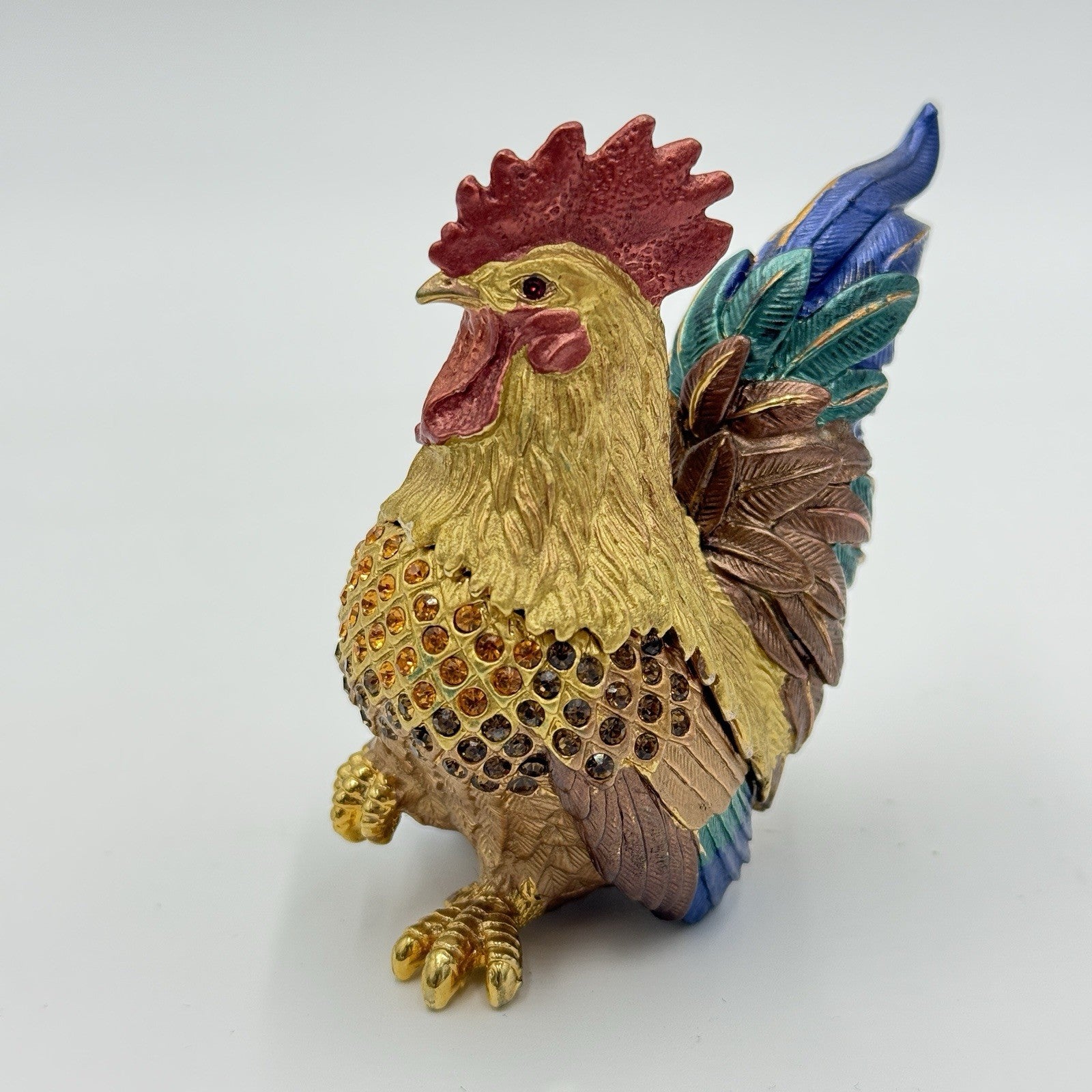 Vintage Rucinni Rooster Trinket Box Jeweled With Swarovski Crystals Original Box