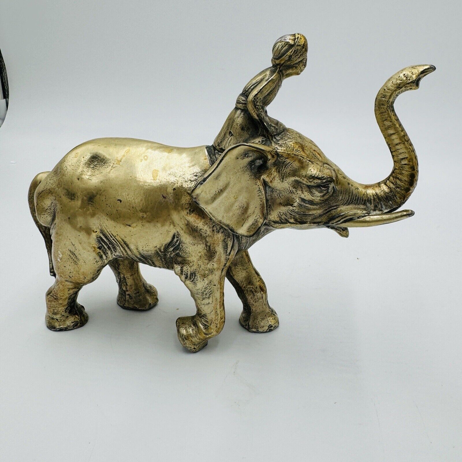 Vintage Solid Metal Elephant India Figurine Heavy Sculpture 5”H X 7” L