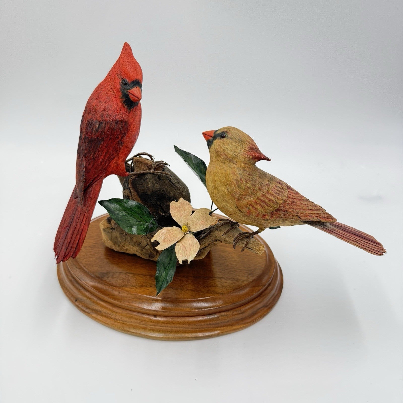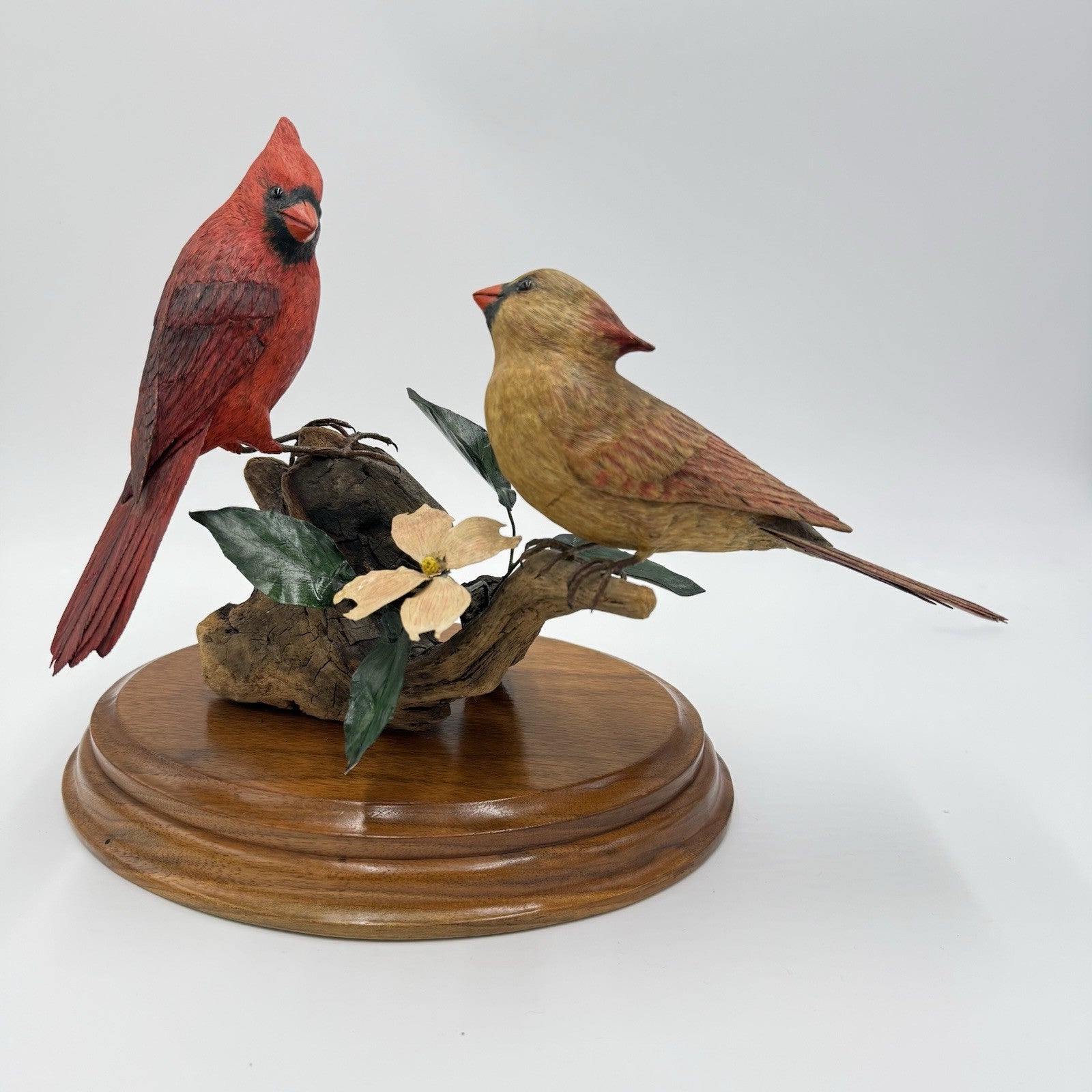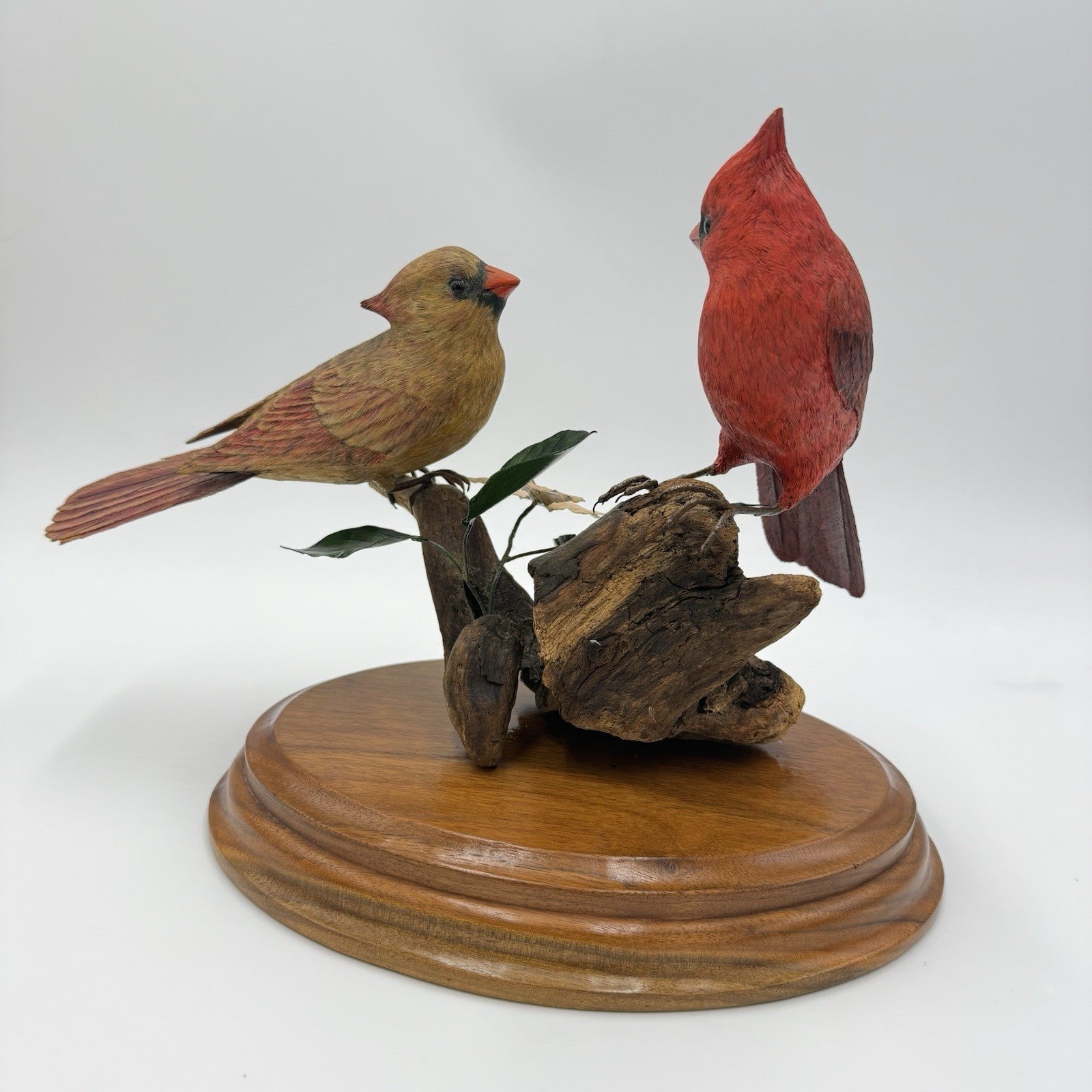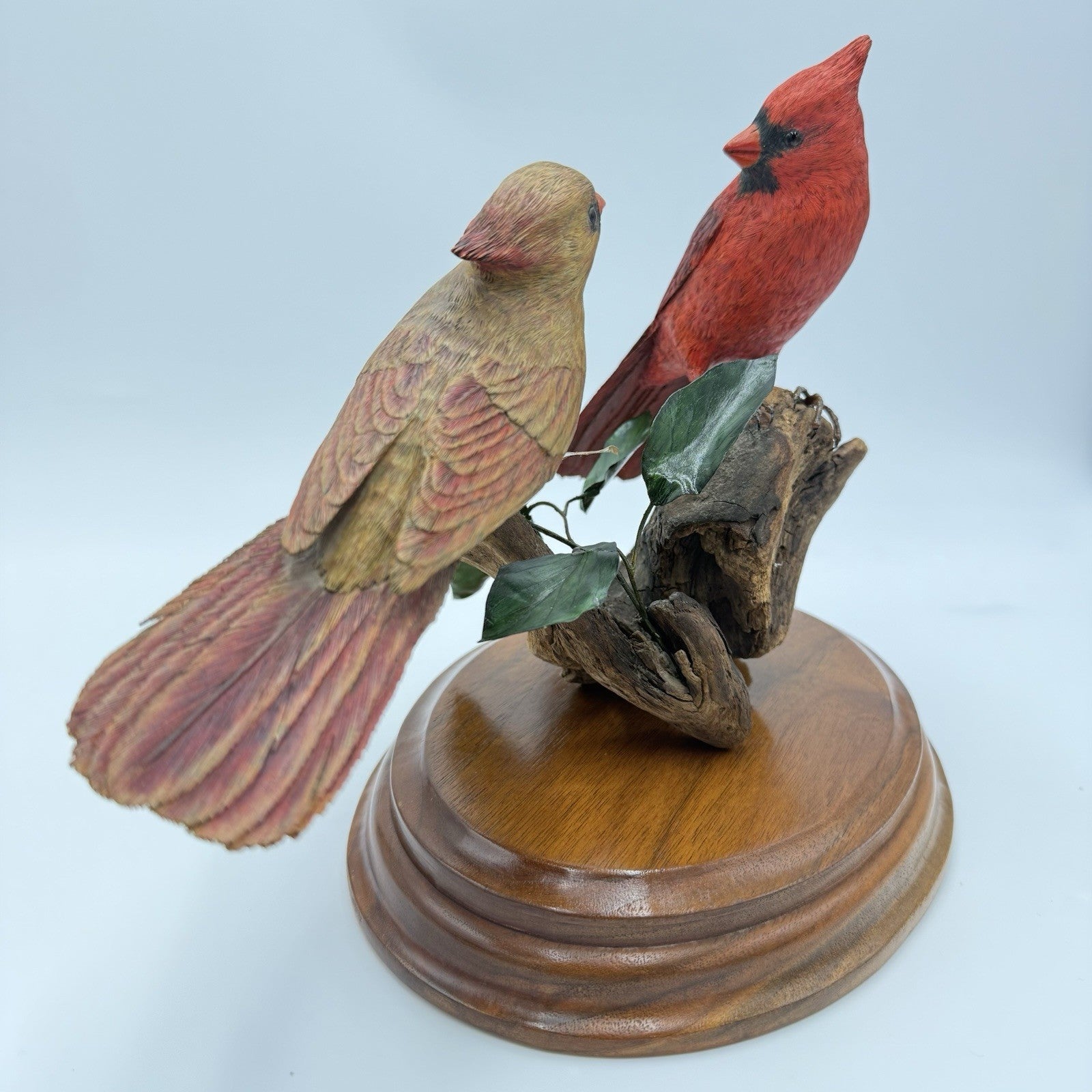 Vintage Susan Young Folk Art Wood Carving Northern Pair Cardinal Perched Signed