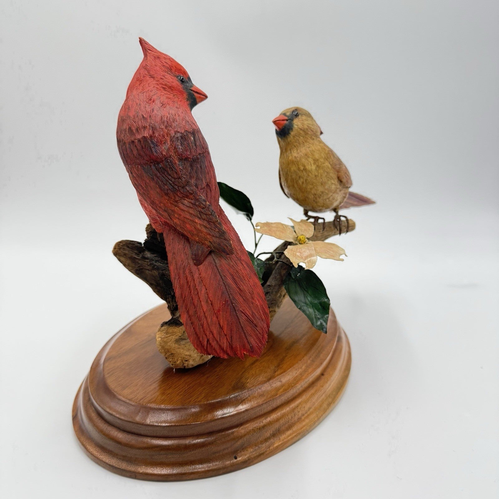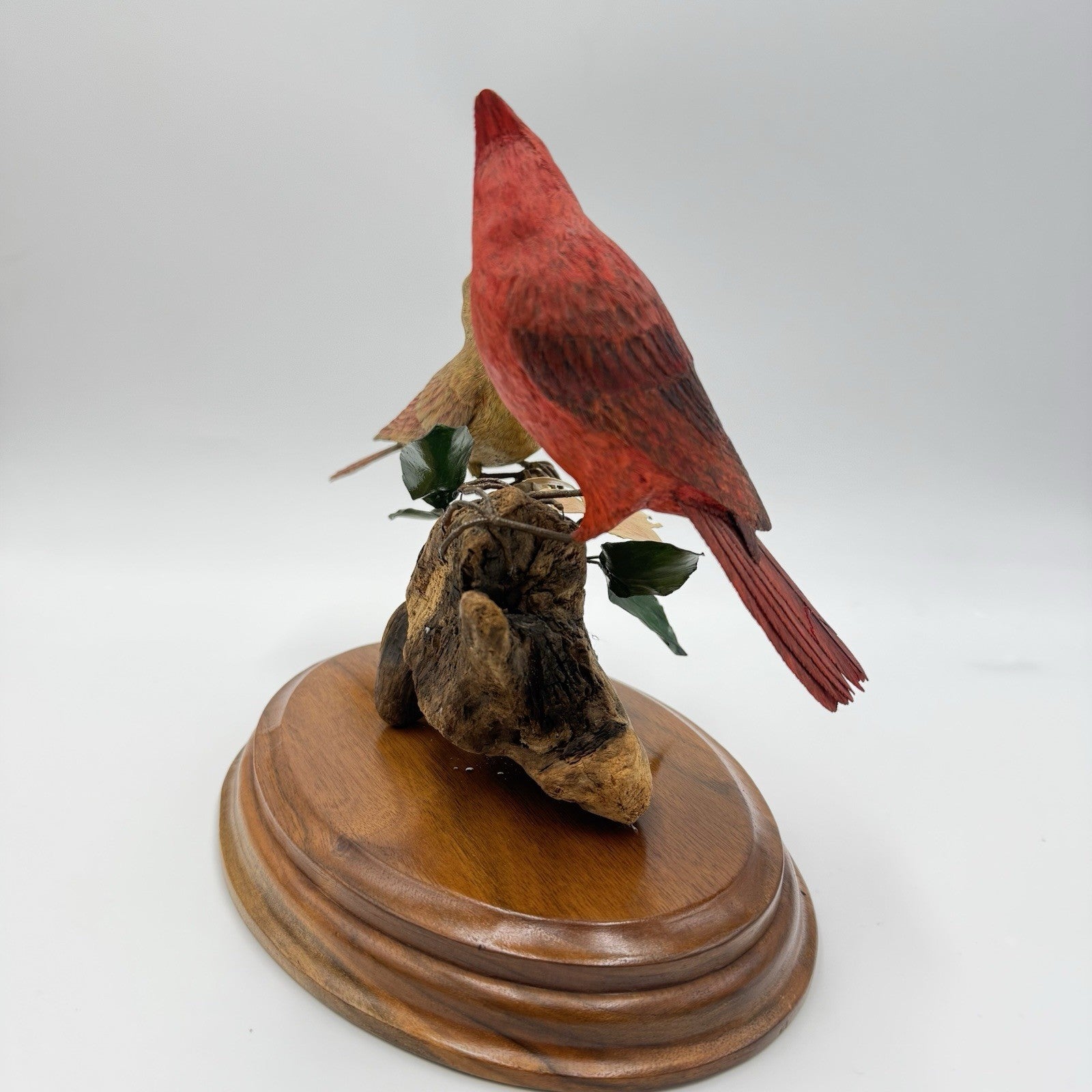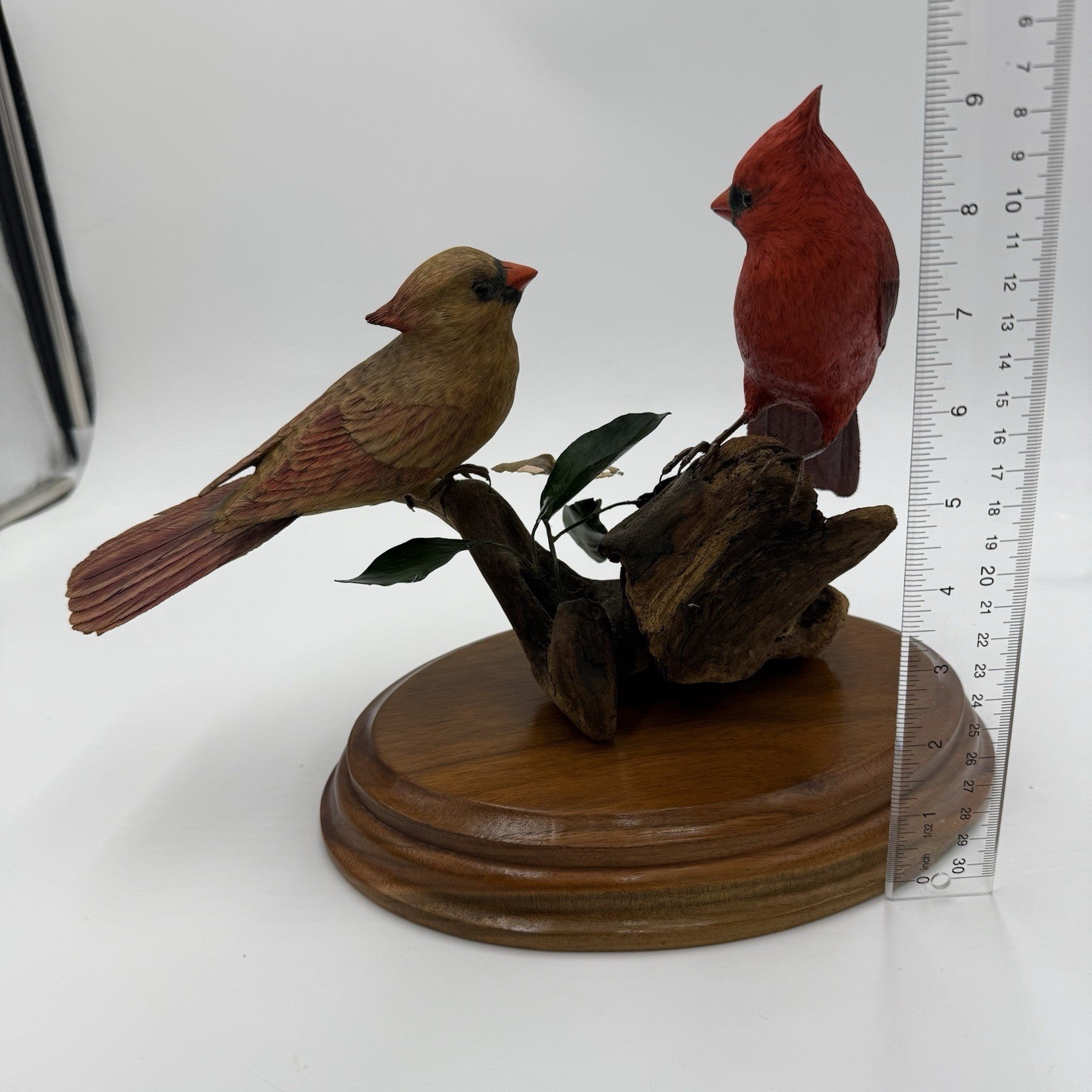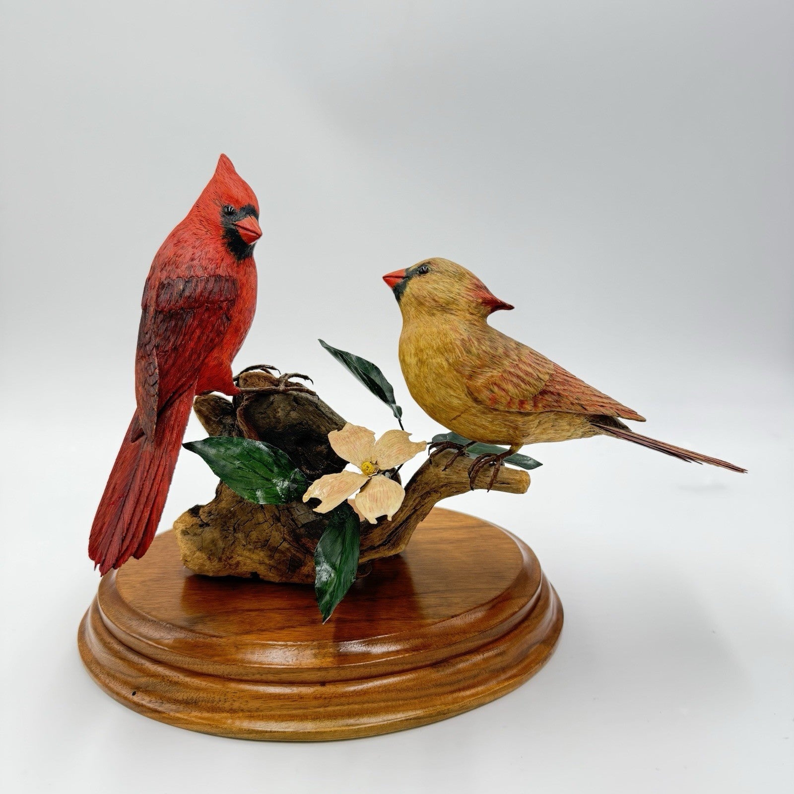 Vintage Susan Young Folk Art Wood Carving Northern Pair Cardinal Perched Signed