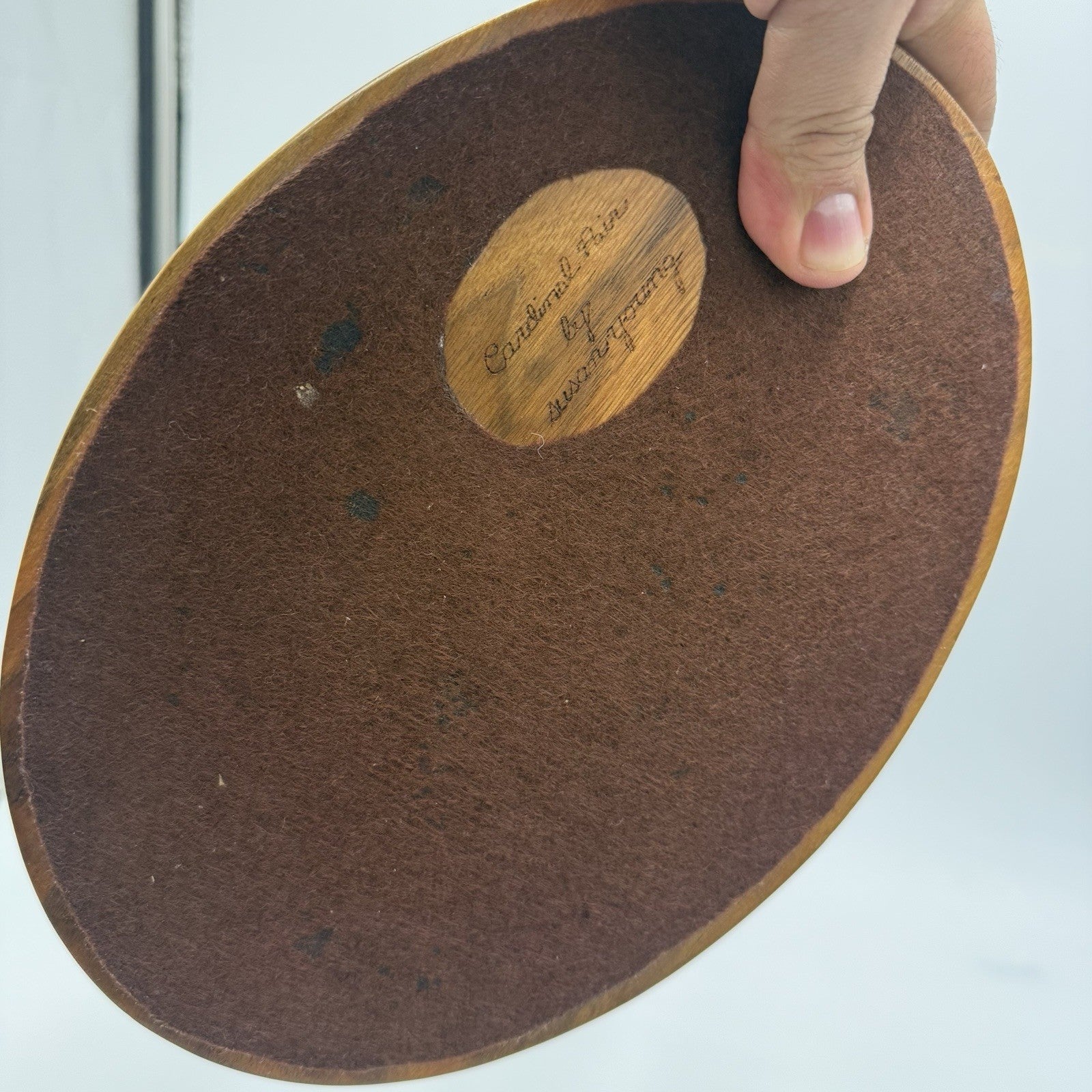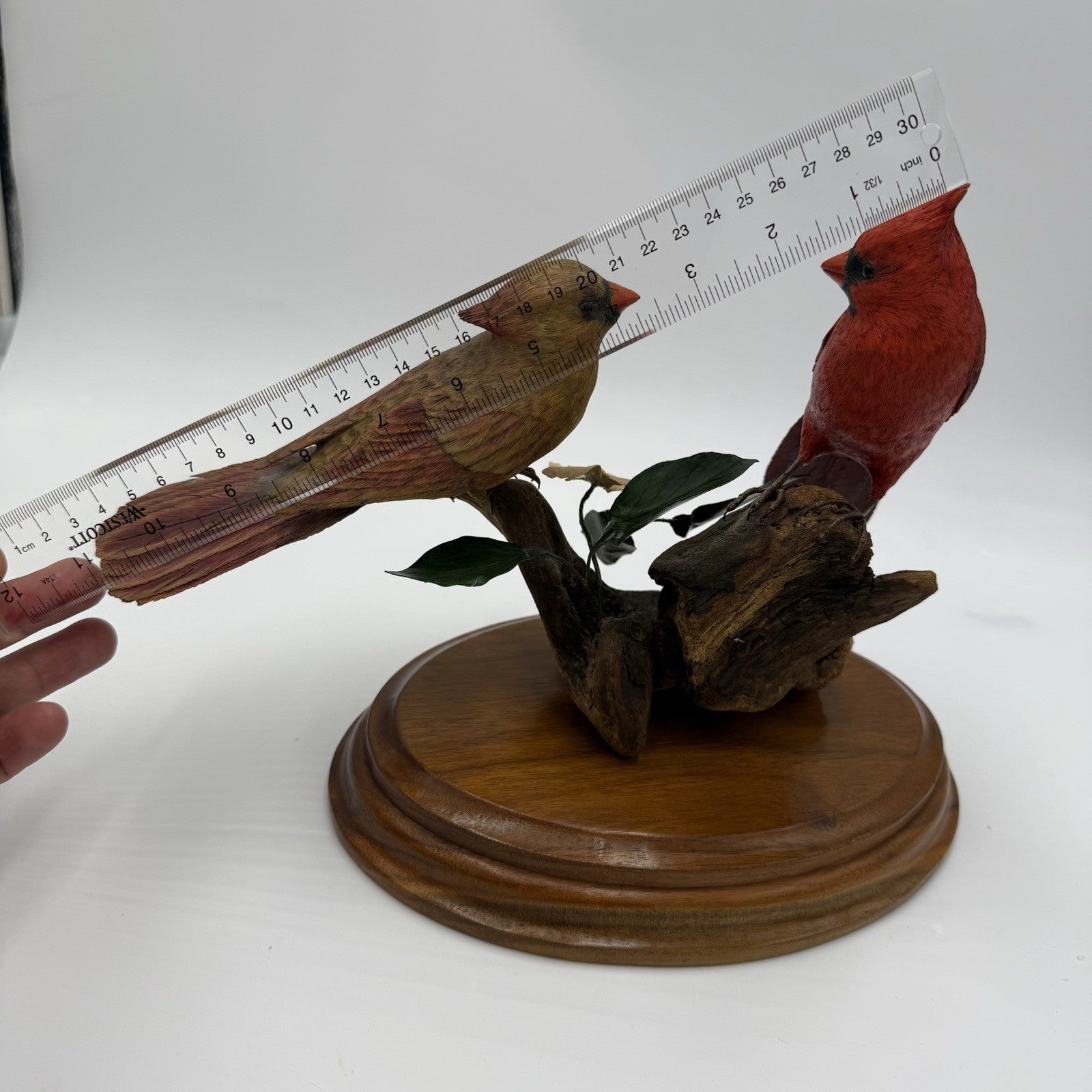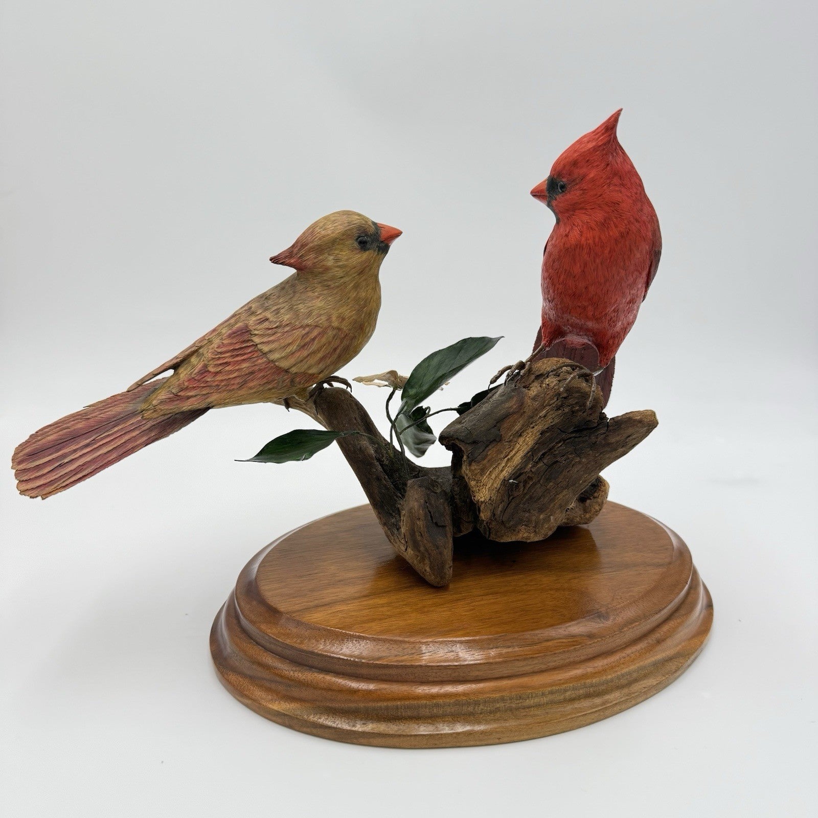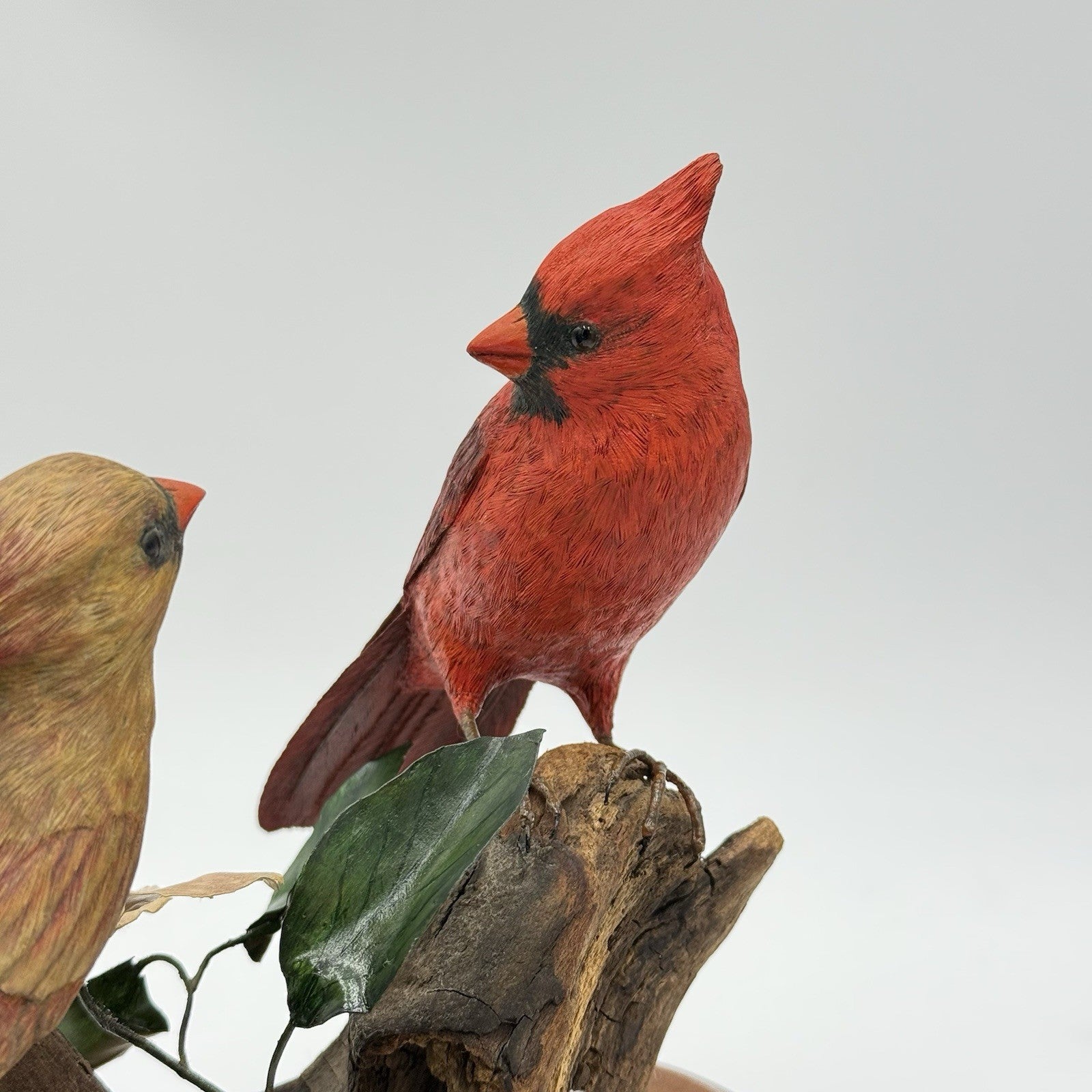 Vintage Susan Young Folk Art Wood Carving Northern Pair Cardinal Perched Signed