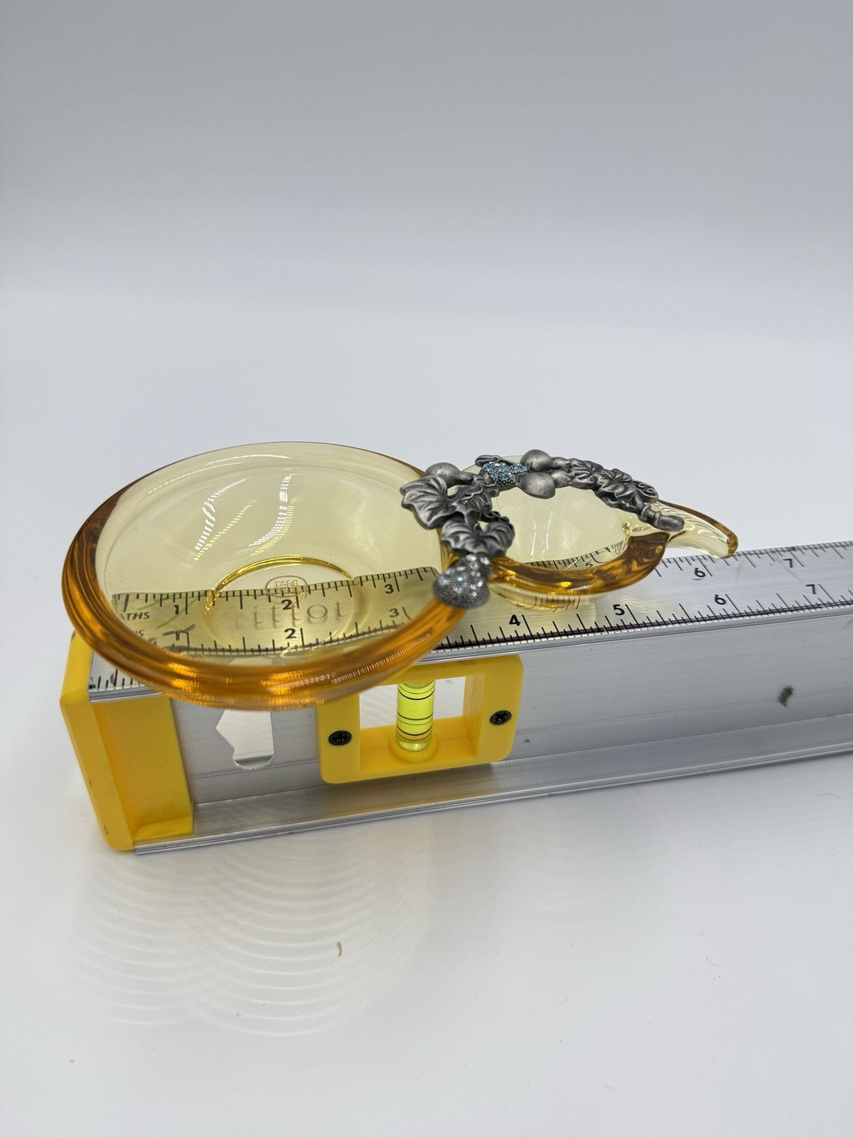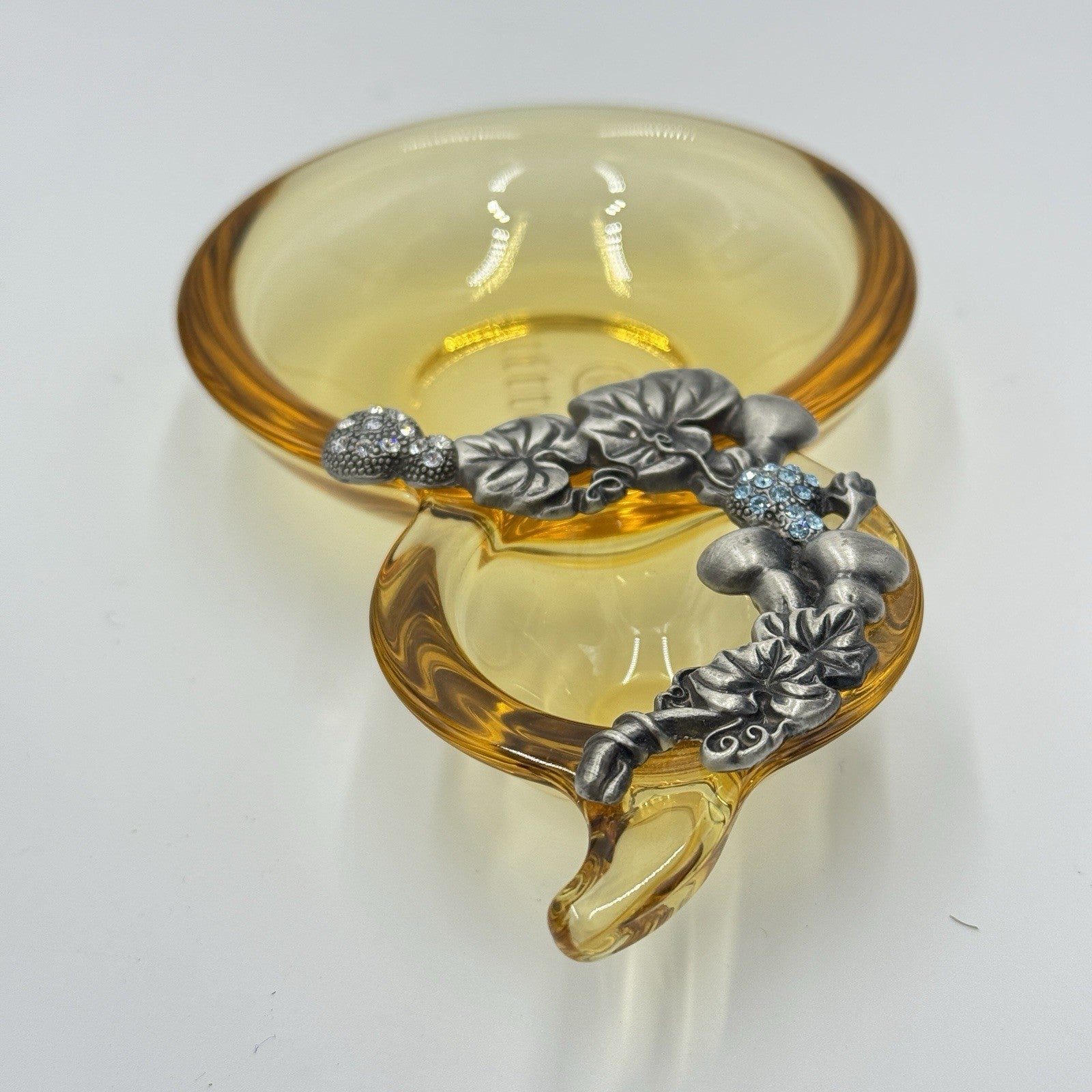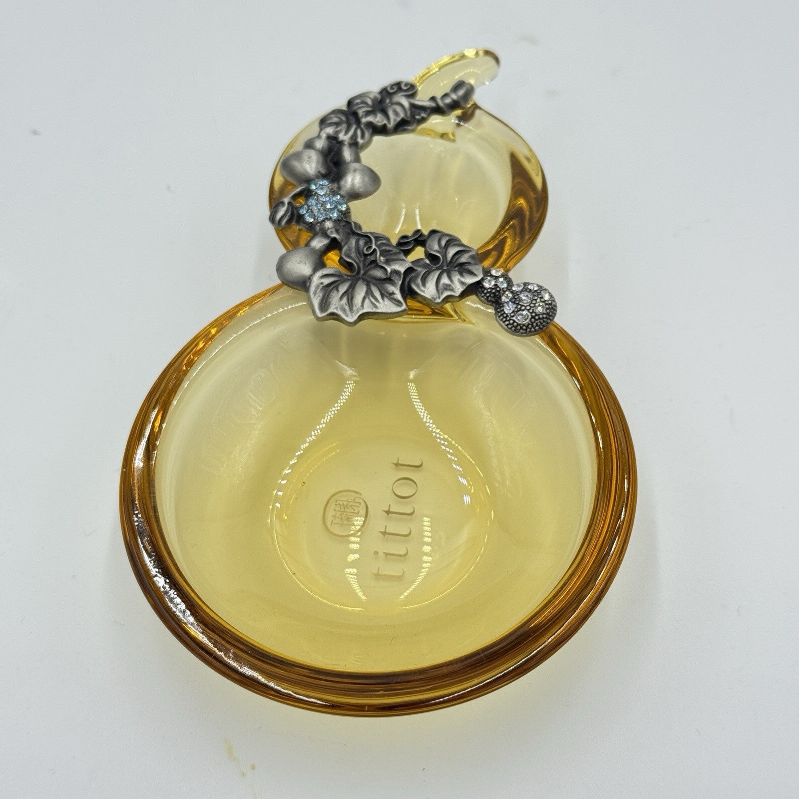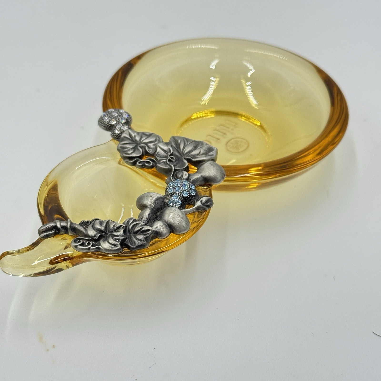 Vintage Tittot Art Glass Amber Pewter Accents Harvest Bounty Jewelry Tray