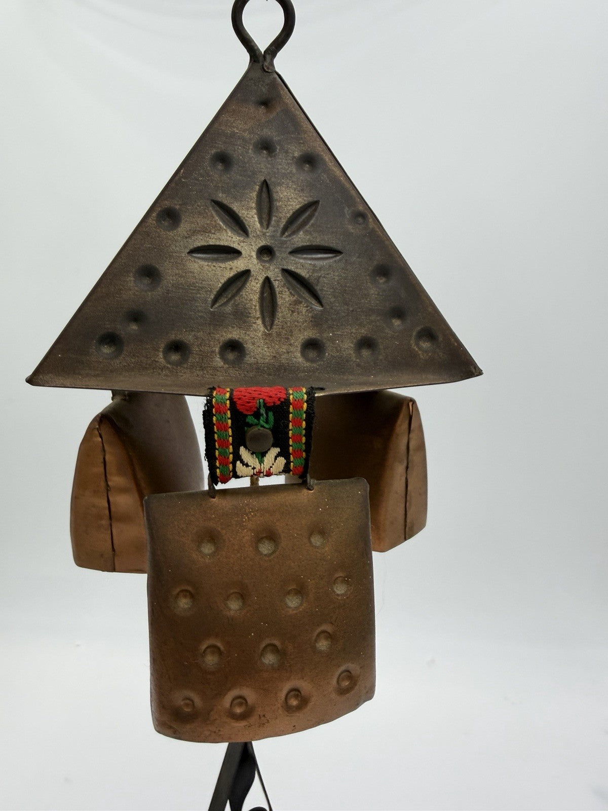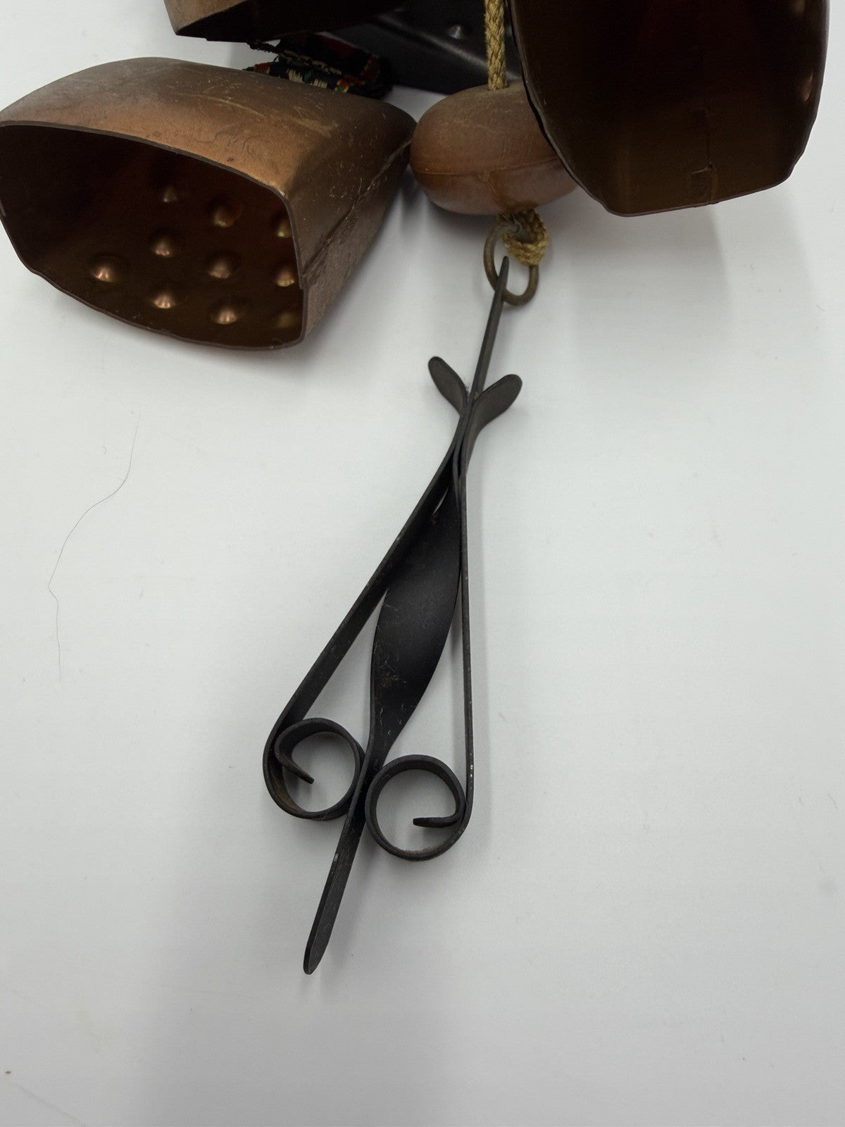 Vintage West Germany Hanging Cowbells Wind Chime 12” 3 Bells Rustic Copper