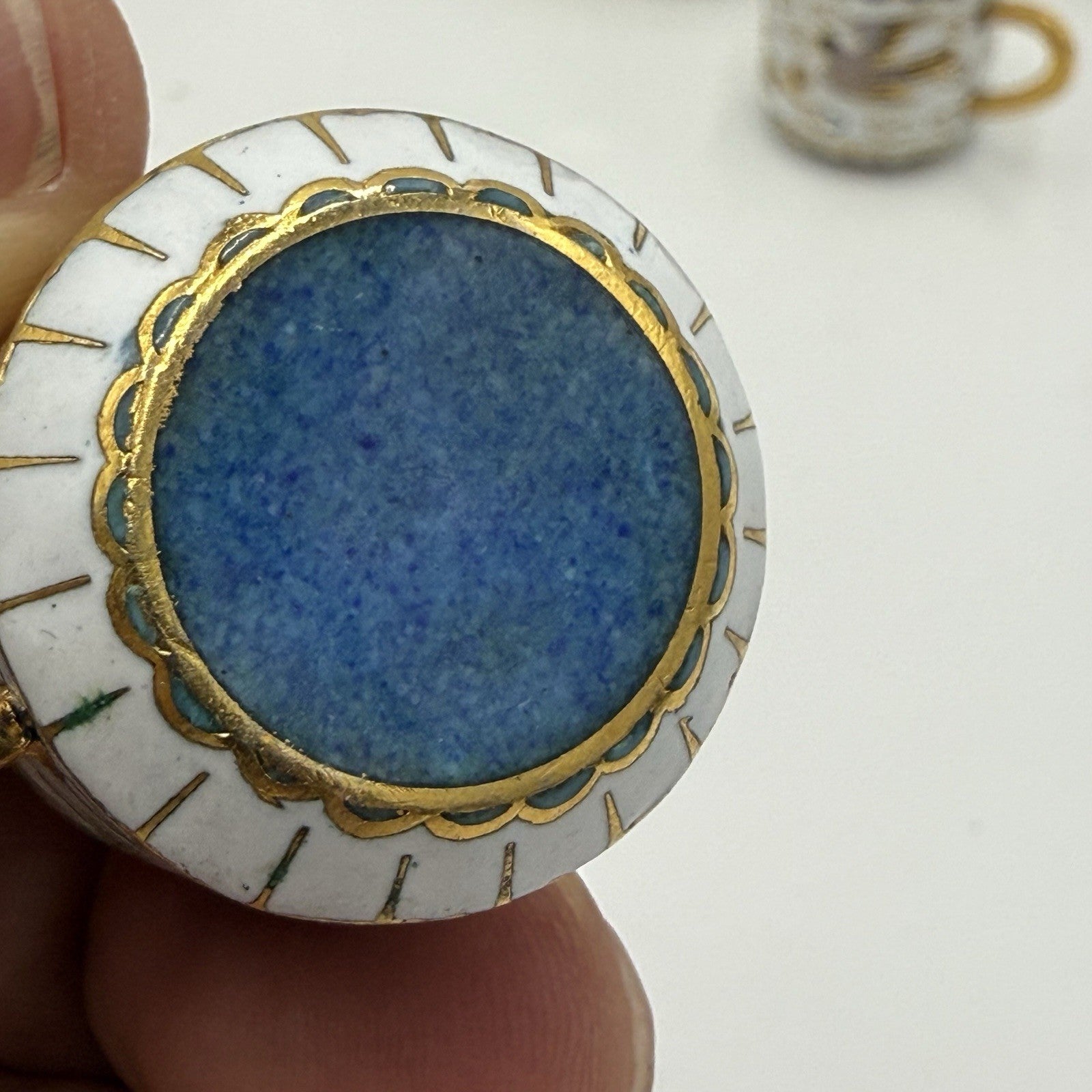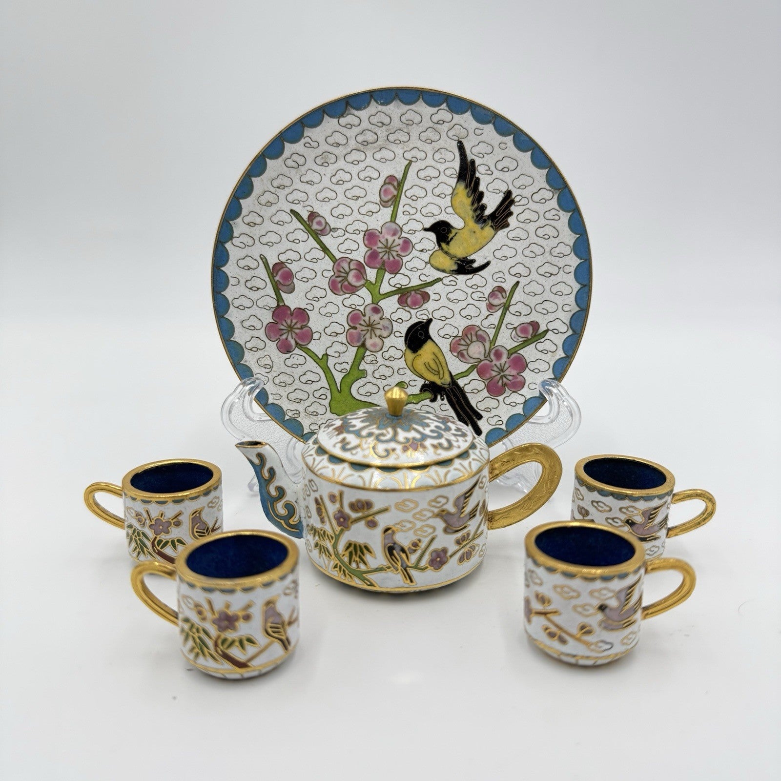 Vtg Cloisonné Enamel Chinese Bird Pattern Miniature Tea Set Dollhouse 6 PCs