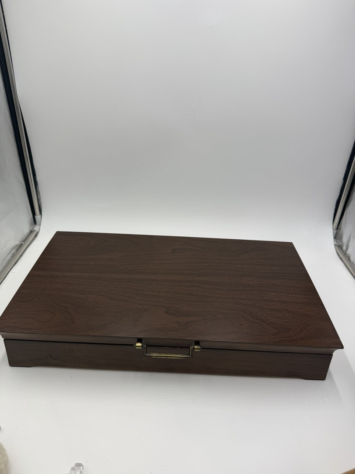 The product is a vintage set of 48 pieces of silver plate flatware by Rogers Bros, made in the United States in the post-1940 era. The set features the Reflection pattern in an Art Deco style, showcasing a sophisticated and timeless design. The silverplate composition adds a touch of elegance and quality to the collection, making it a valuable addition to any antique silverware collection.
