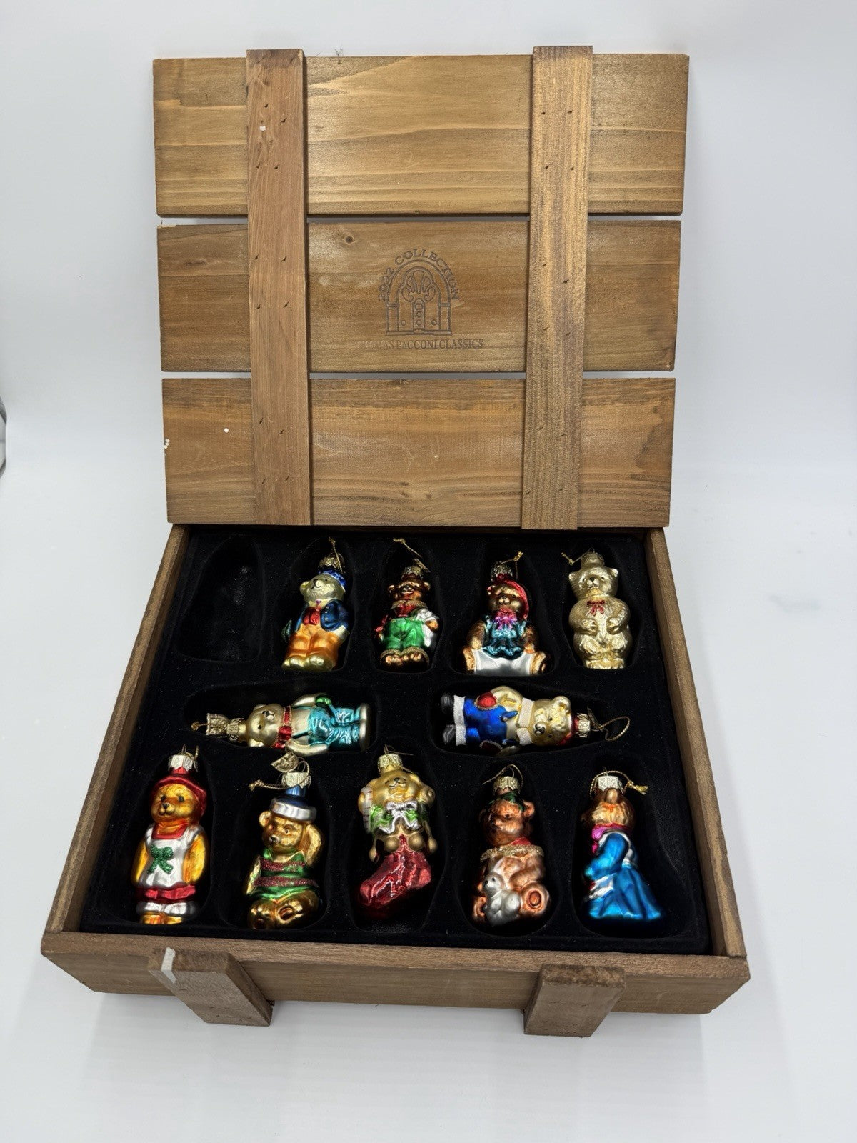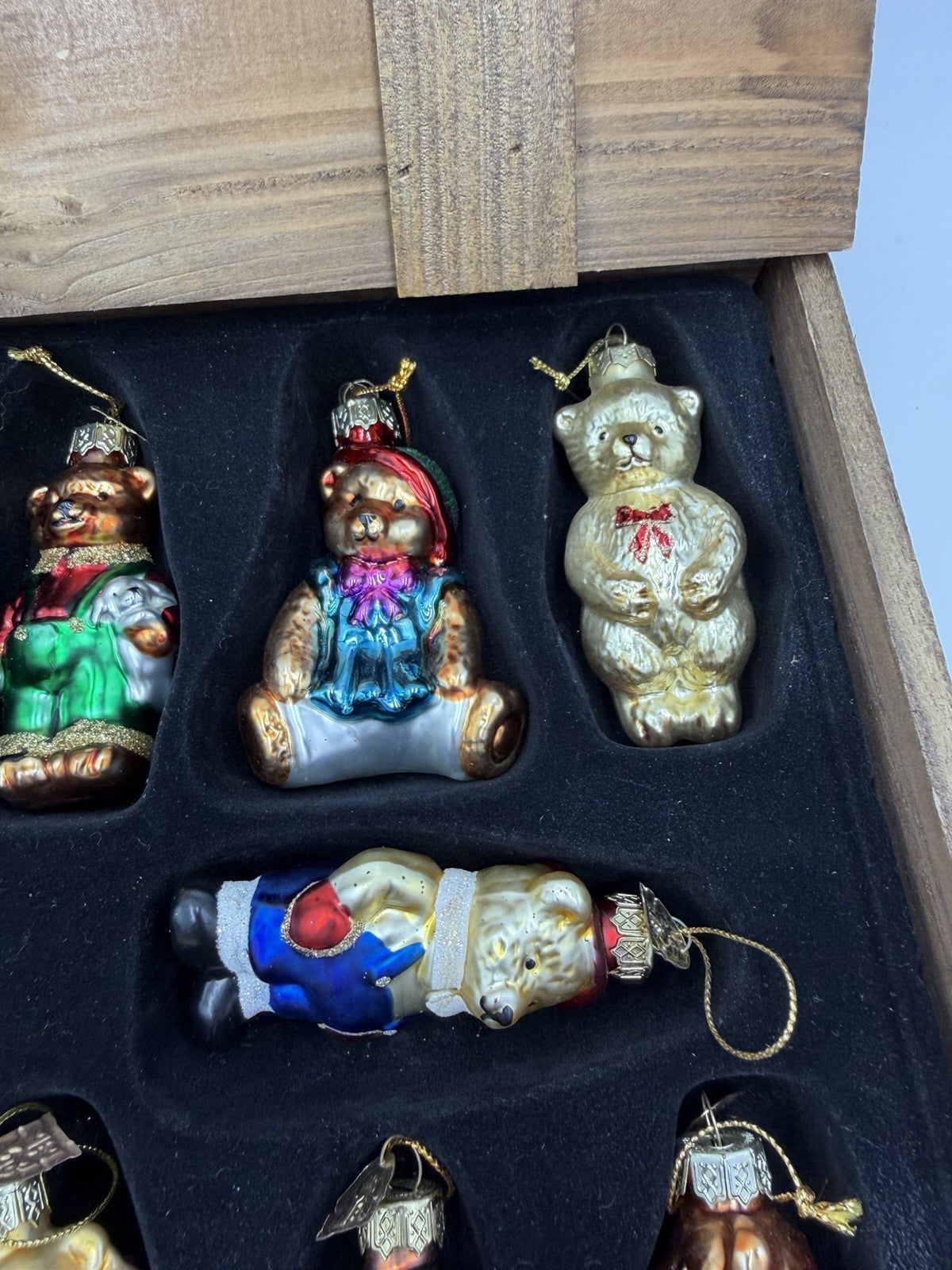 Vtg Thomas Pacconi Classics 2002 Teddy Bear Christmas Ornament Set 11 Wood Crate