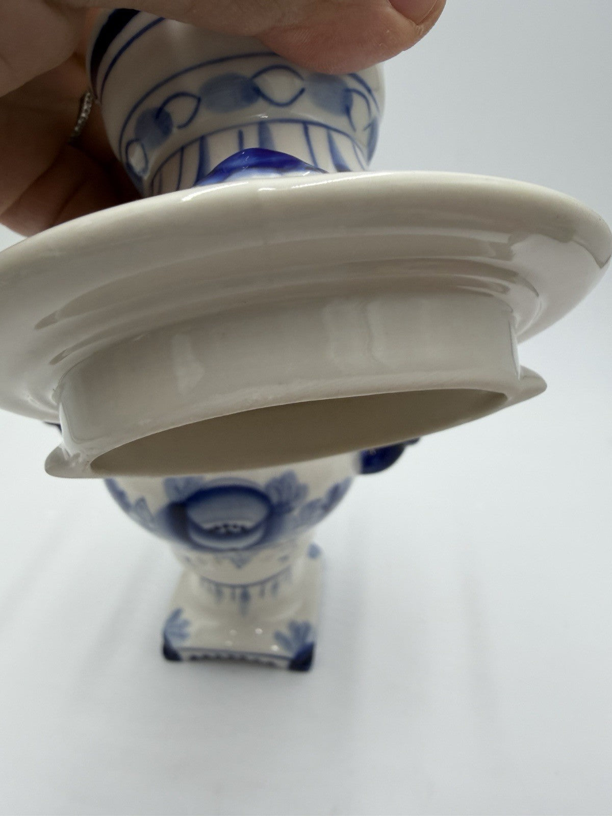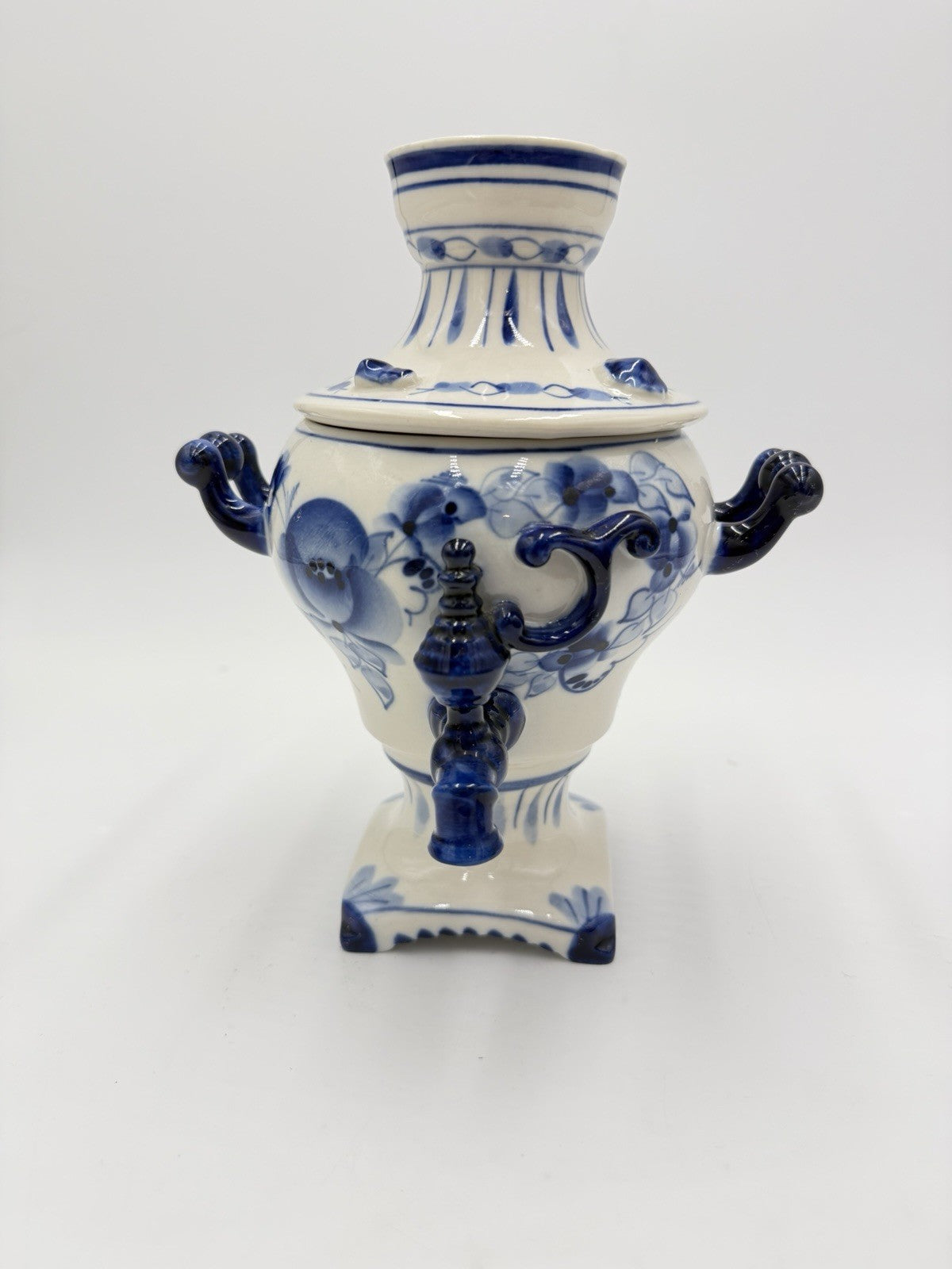 Vtg USSR Porcelain GZHEL Samovar White Blue 8.5” Handmade Tea Urn Floral