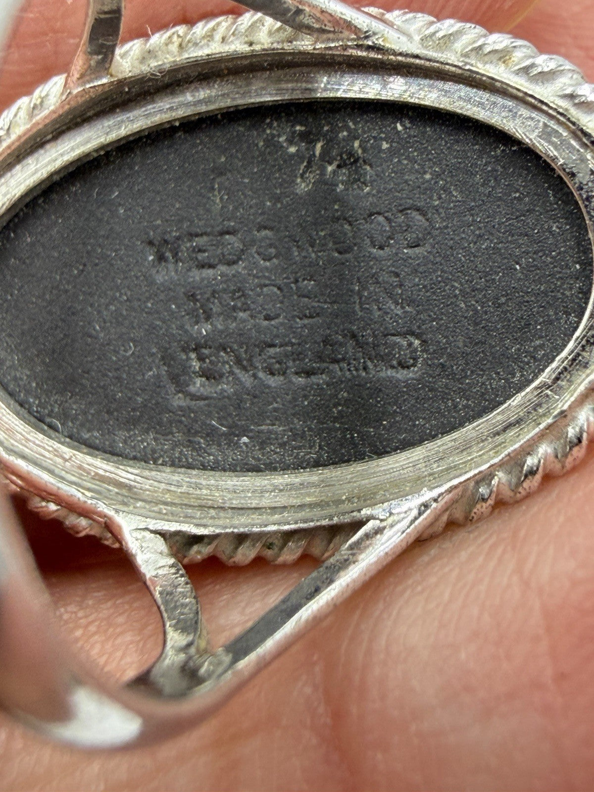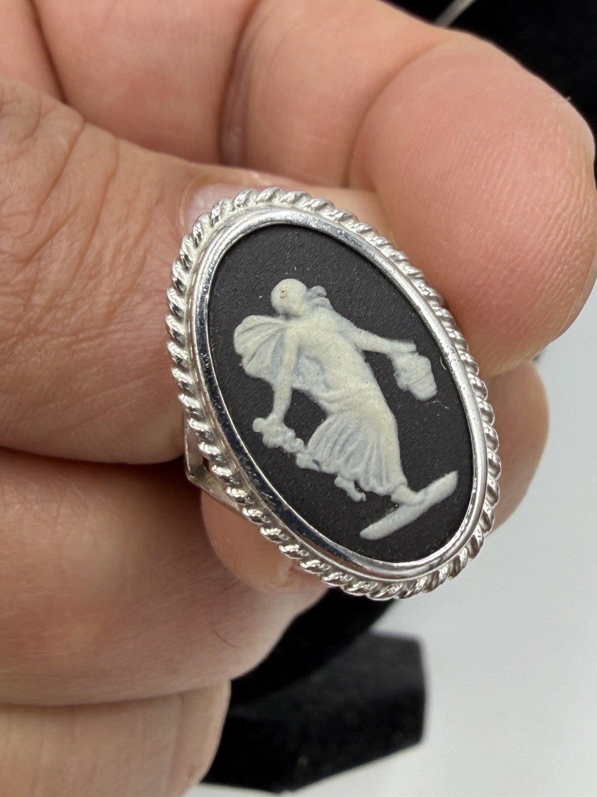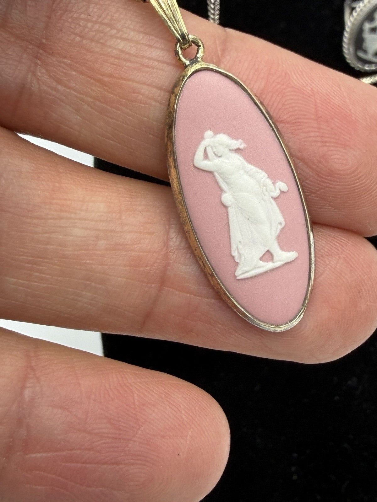 Wedgwood Jasperware Black & Pink Ring Necklace Jewelry Set 2 PCs