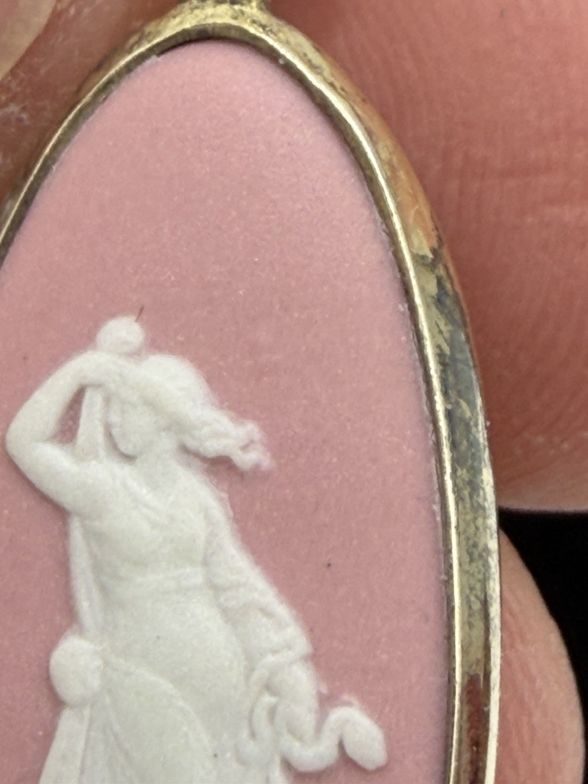 The Wedgwood Jasperware Black & Pink Ring Necklace Jewelry Set includes a delicate sterling ring with a pink Jasperware design and a pink pendant with sterling necklace . Crafted in the United Kingdom, this set features a classic black and pink color scheme, making it a versatile and elegant addition to any jewelry collection. The high-quality materials and exquisite craftsmanship of this set truly make it a timeless piece that is sure to make a statement.